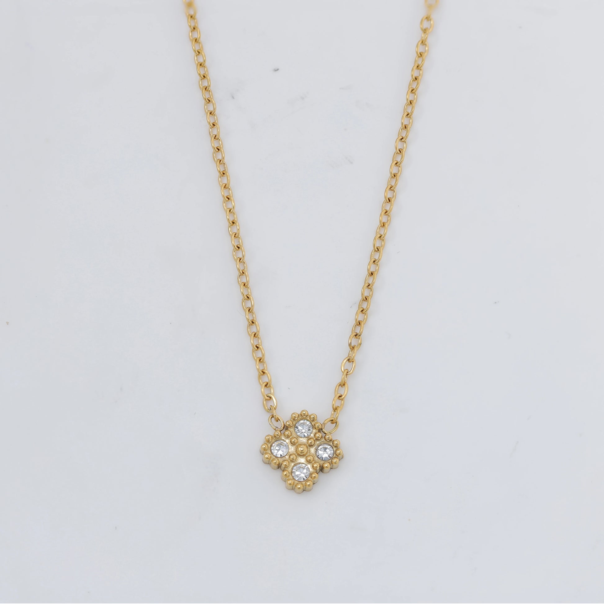 316L Stainless Steel Zircon Splicing Golden Flowers Necklace Earrings Women Girl Set New Trend Non-fading Jewelry Suit