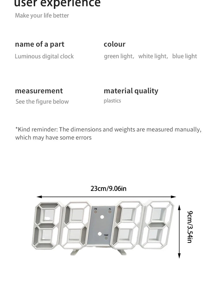 3D Digital Silent Clock Luminous Desktop Alarm Clock Digital Wall Clock Simple Clock Ornament