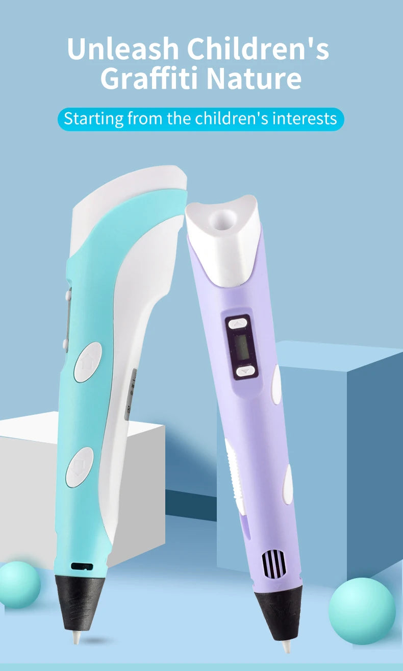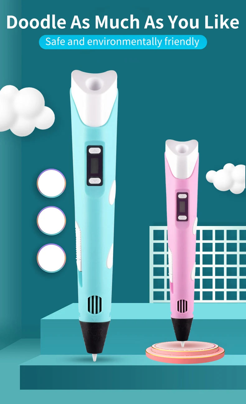 3D Pen For Children 3D Printing Drawing Pen DIY Funny Set for Kids Chidren Birthday Chrismas Creative Gift with PLA Filament
