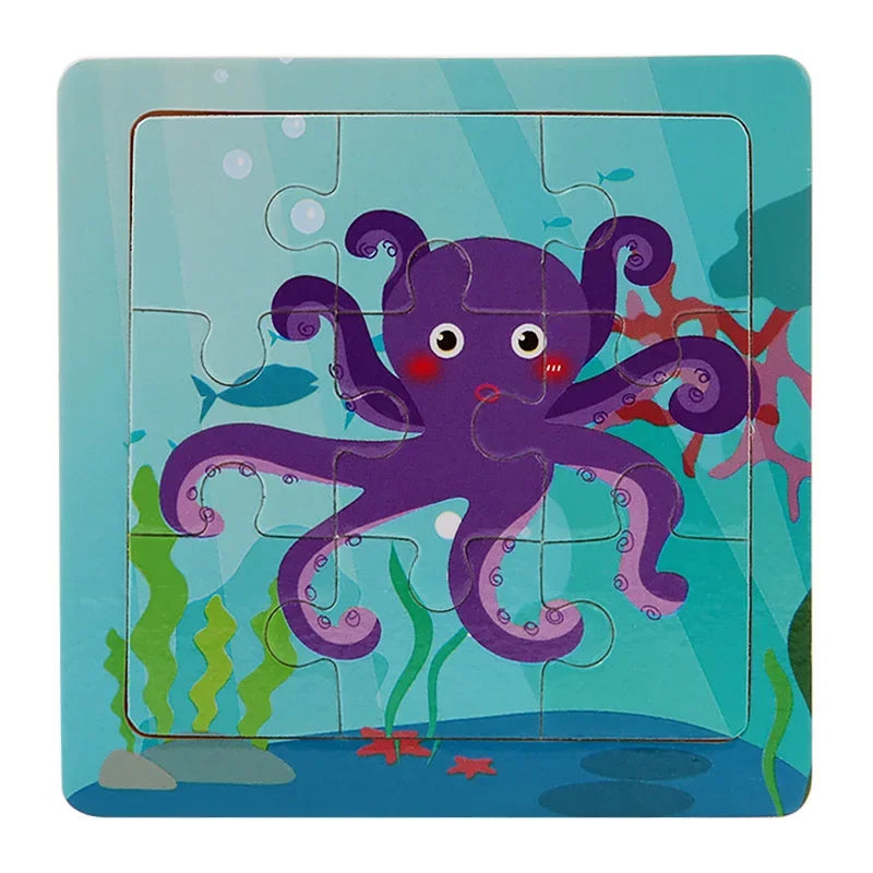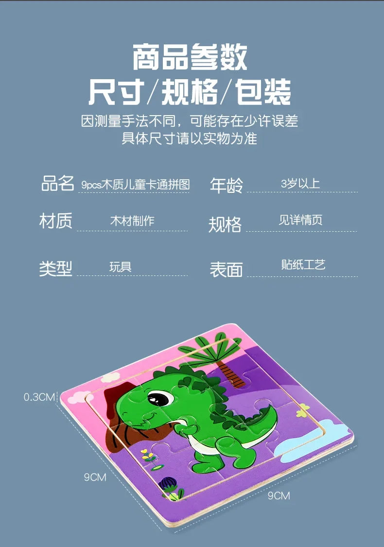 3D Puzzles Cartoon Animals Wooden Montessori Game Kids Cognitive Jigsaw Puzzle Baby Toys Educational Toys for Children Toddler