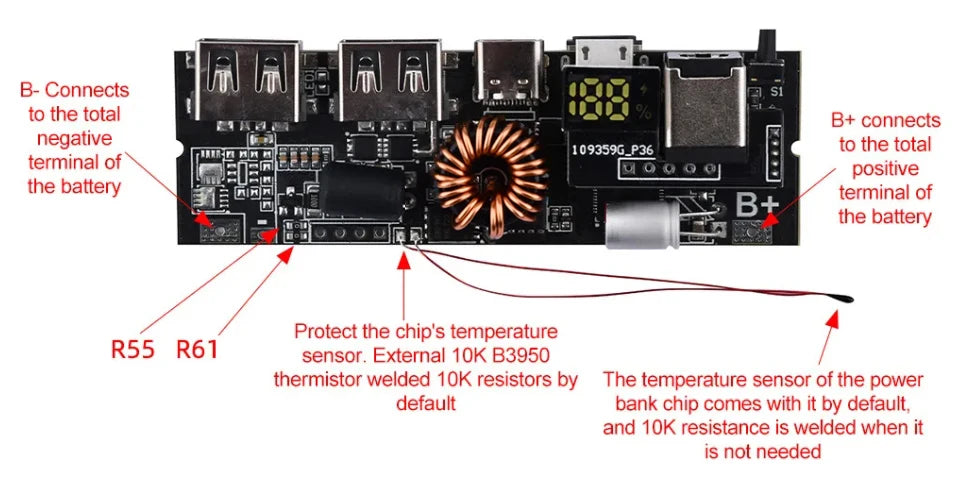 3S/4S/5S Bidirectional PD Power Bank Module – 6 Port 65W~100W Fast Charge DIY Mobile Power Motherboard Kit