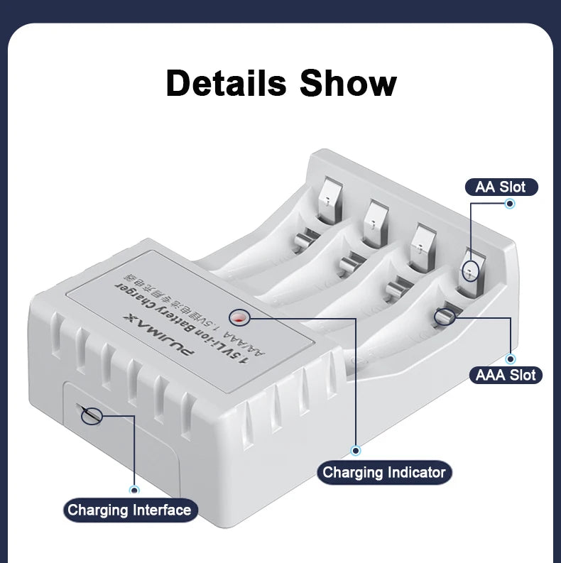 4 Slots 1.5V Rechargeable Lithium Battery Charger For AA Lithium Battery Large Capacity Rechargeable Li-ion Battery With Cable