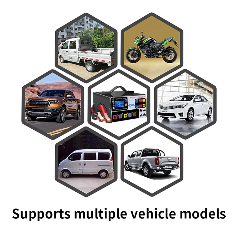 400A Intelligent Pulse Repair Charger Battery High Power Fast Charger 12V/24V Five-Stage Full Automatic Car Battery Charger 220W