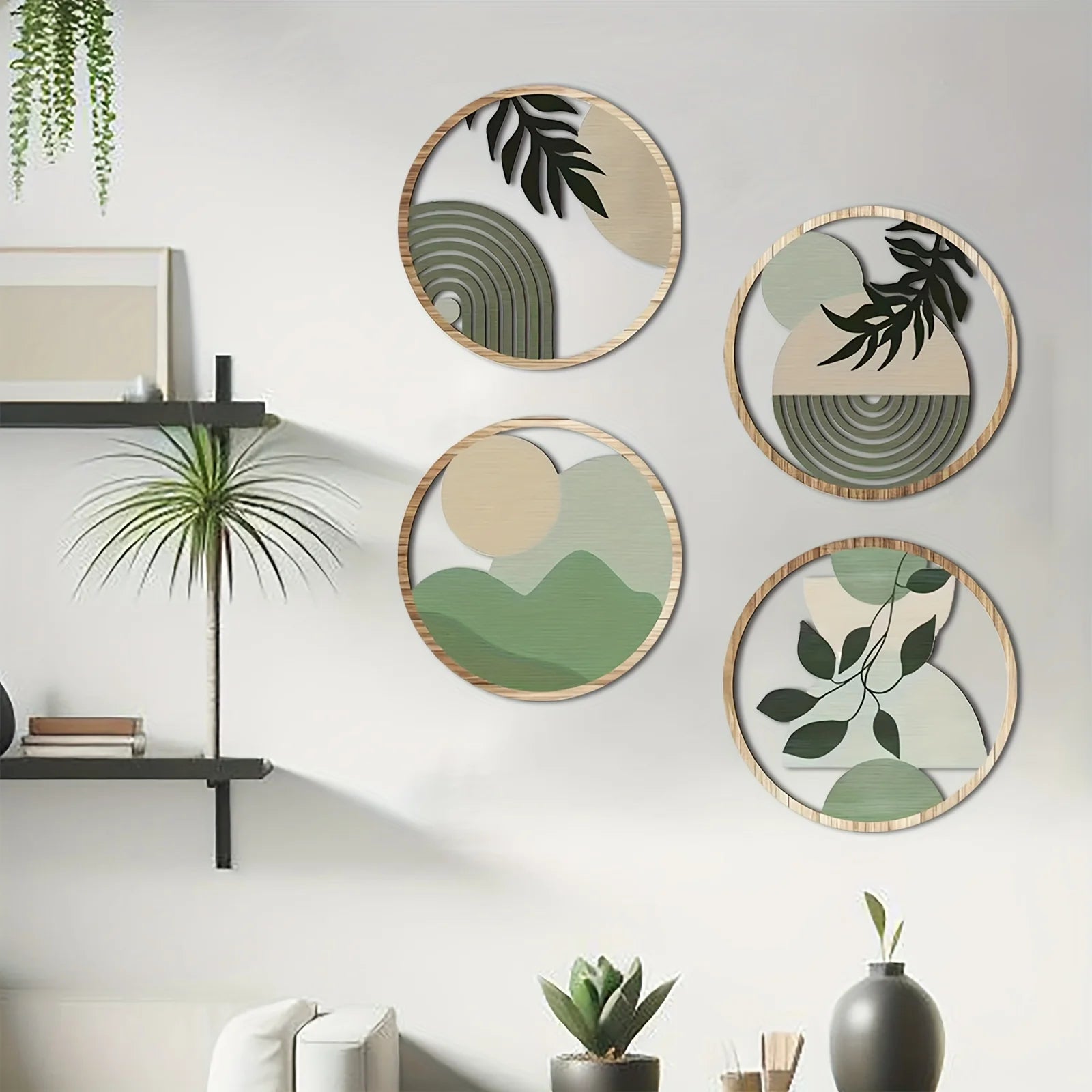4PC Bohemian Wooden Wall Art Decor, Hollow Rustic Farmhouse Hanging Sculptures for Living Room, Bedroom, Outdoor Patio