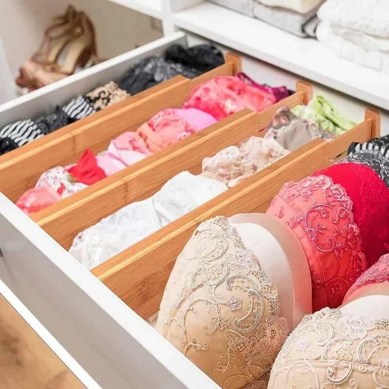 4Pcs Bamboo Drawer Dividers Bedroom Kitchen Drawer Storage Adjustable Expandable Drawer Dividers for Cupboard Cabinet Wardrobe