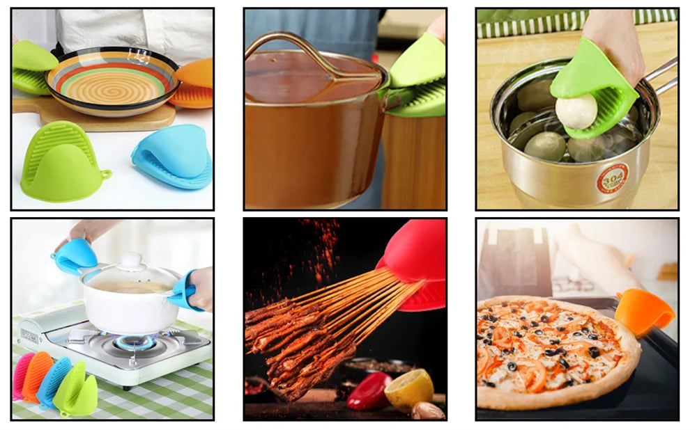 4pcs Oven Glove Thicken Silicone Pot Holder Mini Oven Mitts Heat Resistant Pinch Covers for Baking Kitchen Cooking BBQ Grilling