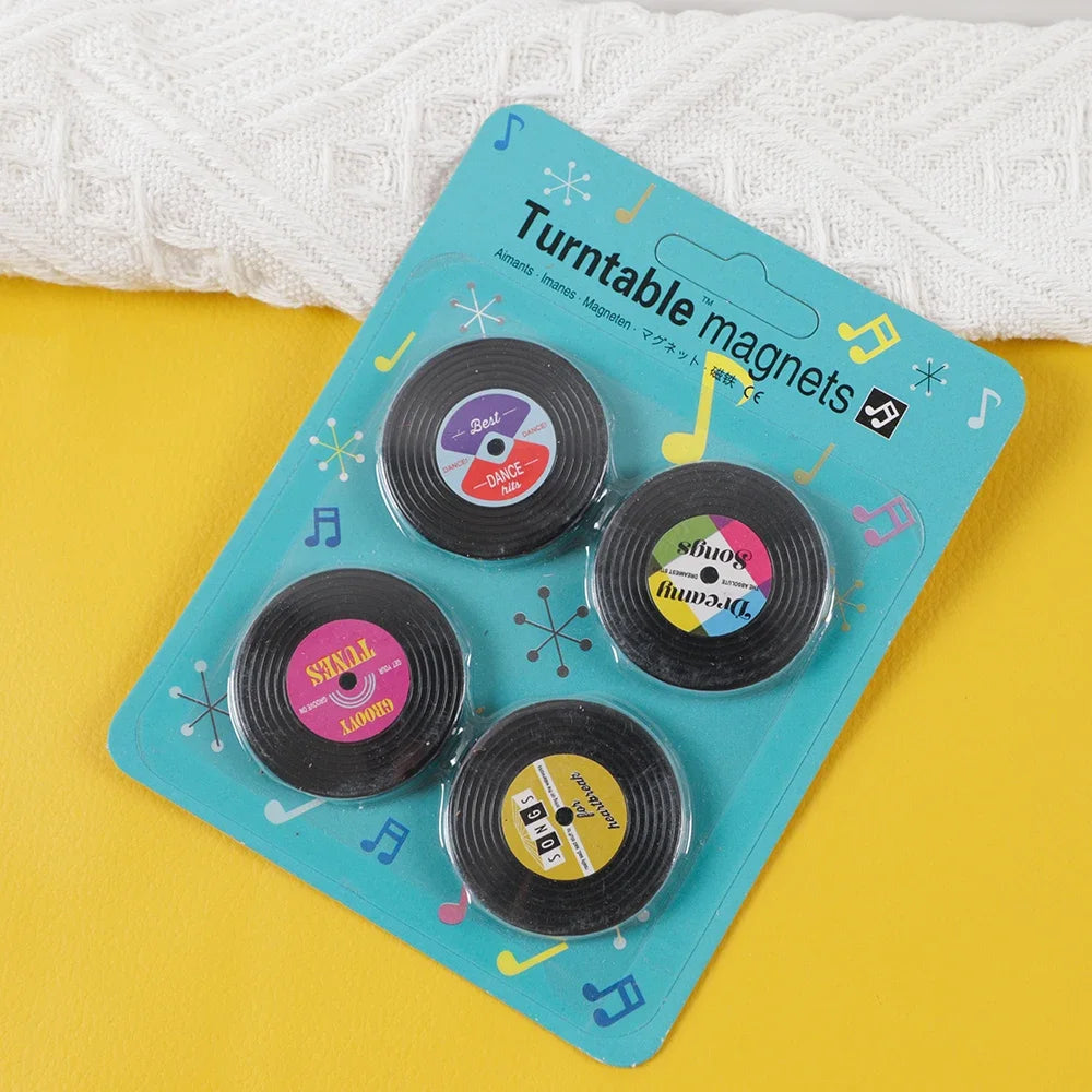 4Pcs/Pack Creative Gramophone Record Fridge Magnet Message Board Reminder Refrigerator Sticker for Home Kitchen Decoration