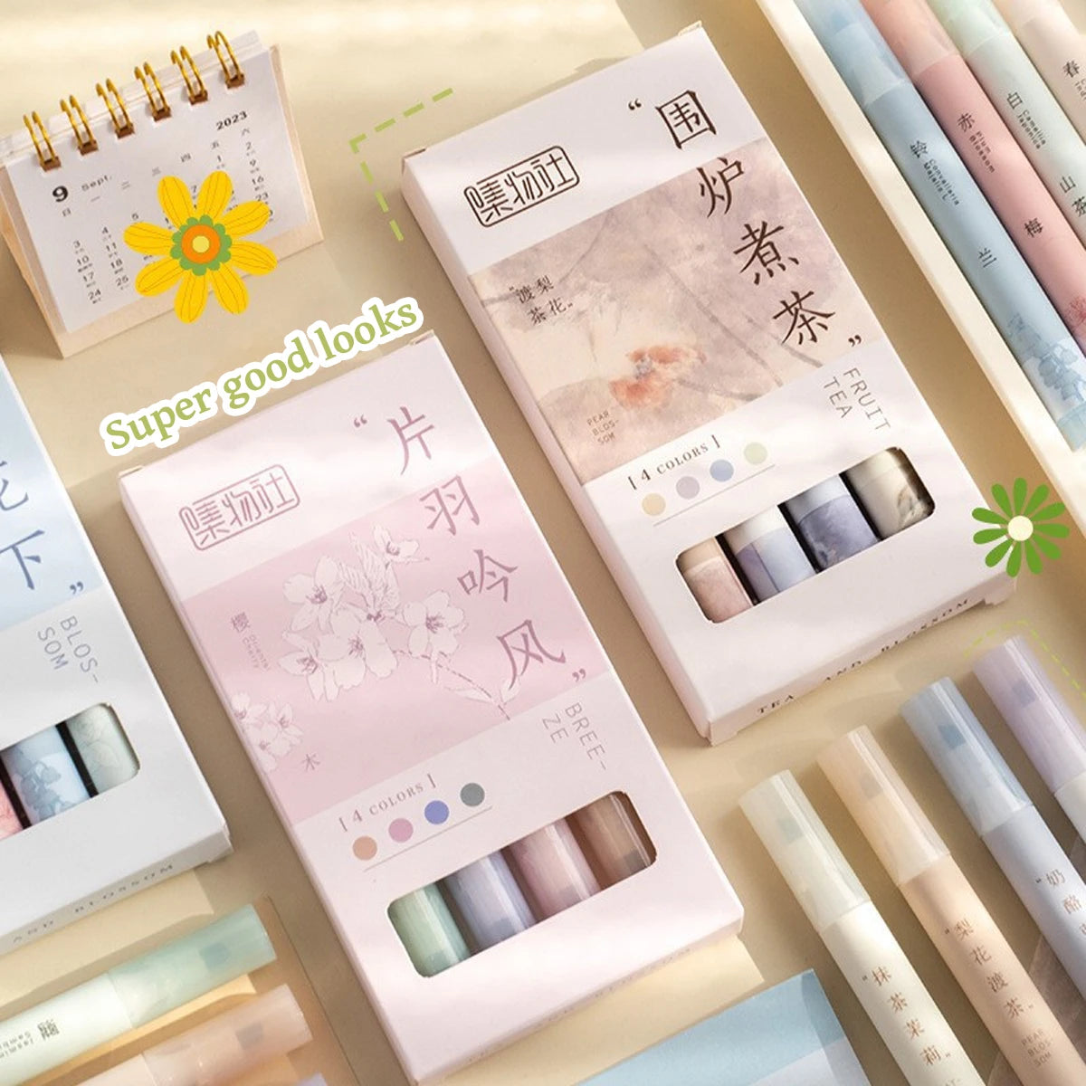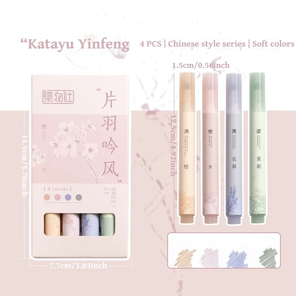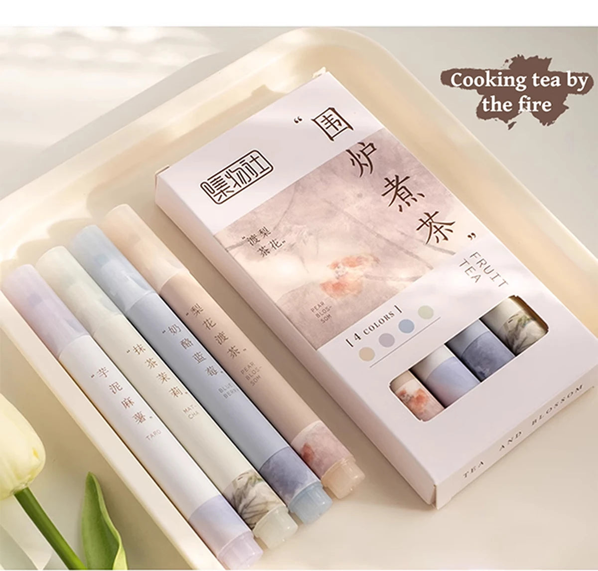 4PCS Retro Style Handbook Pen Marker Graffiti Brush Inscription Pen Office Culture and Educational Supplies