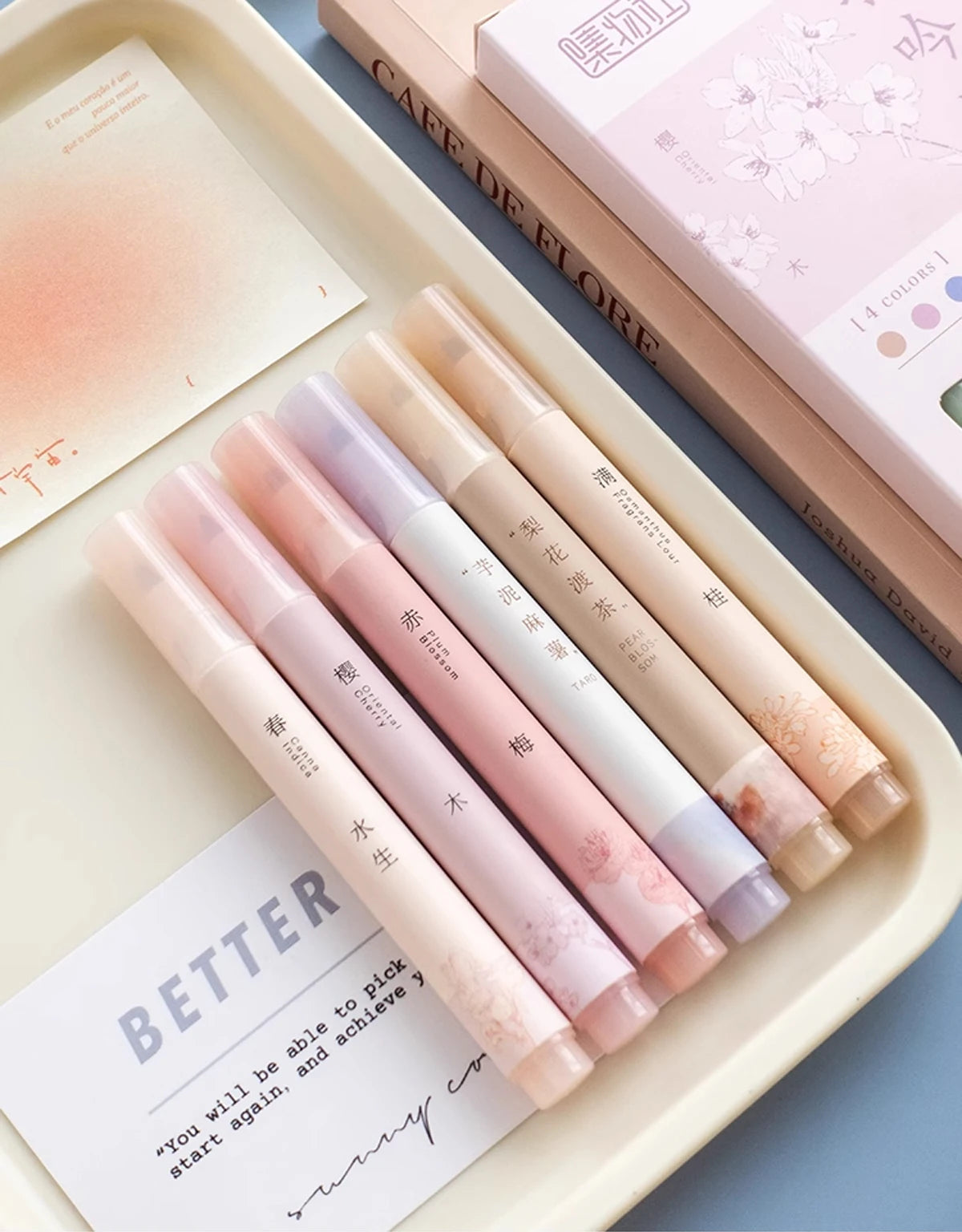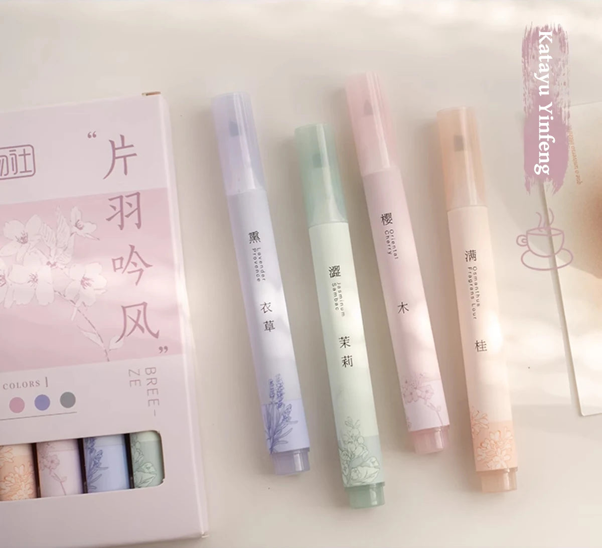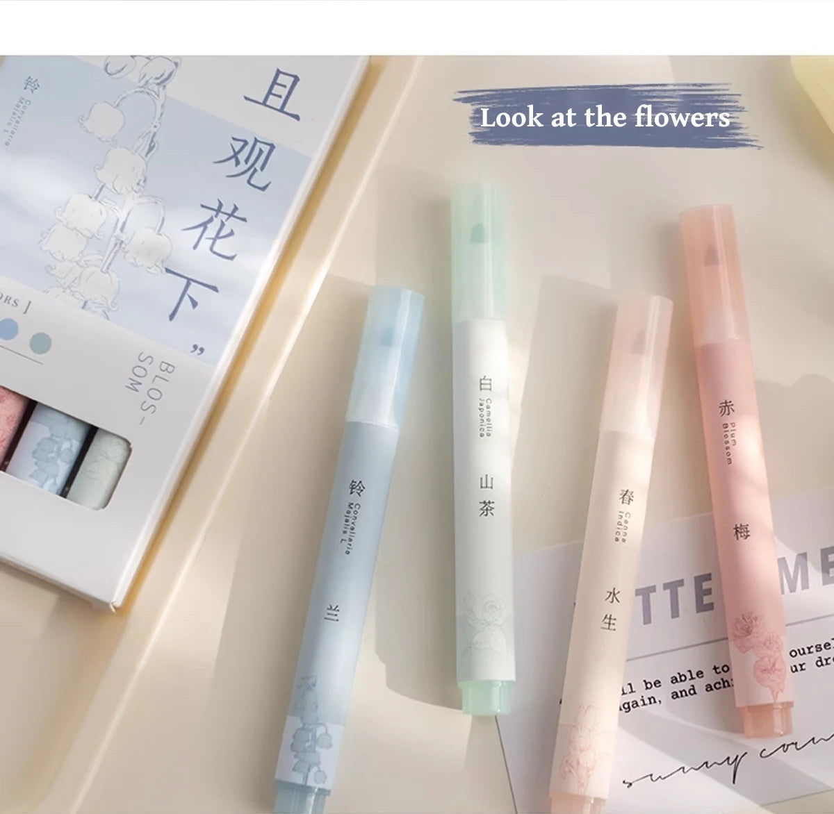 4PCS Retro Style Handbook Pen Marker Graffiti Brush Inscription Pen Office Culture and Educational Supplies