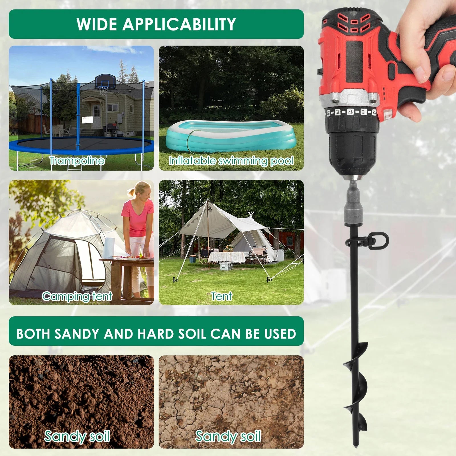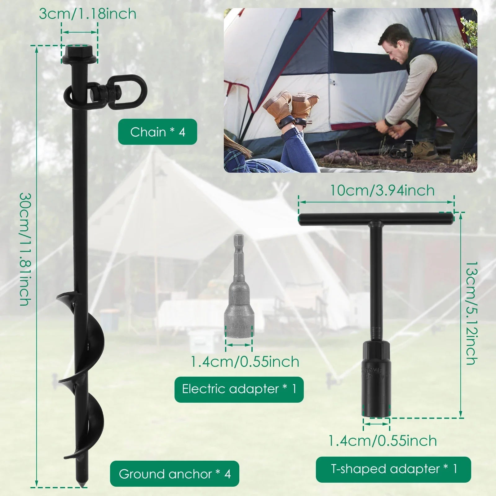 4Pcs Trampoline Anchors Set 11.8inch Heavy Duty Ground Anchors High Wind Trampoline Stakes Manual/Drill Installed Swing Anchors