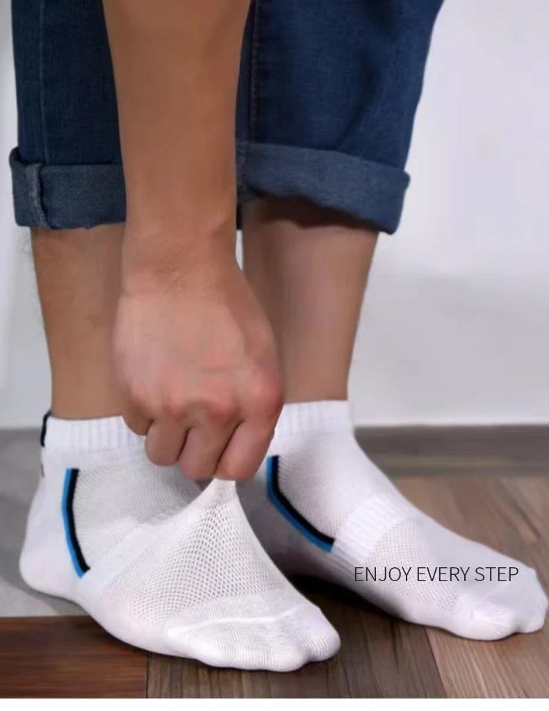 5 Pairs/pack of "Sports" MEN'S Summer Socks, Personalized Boat Socks, Breathable Mesh, Youth Student Socks, Mixed Colors