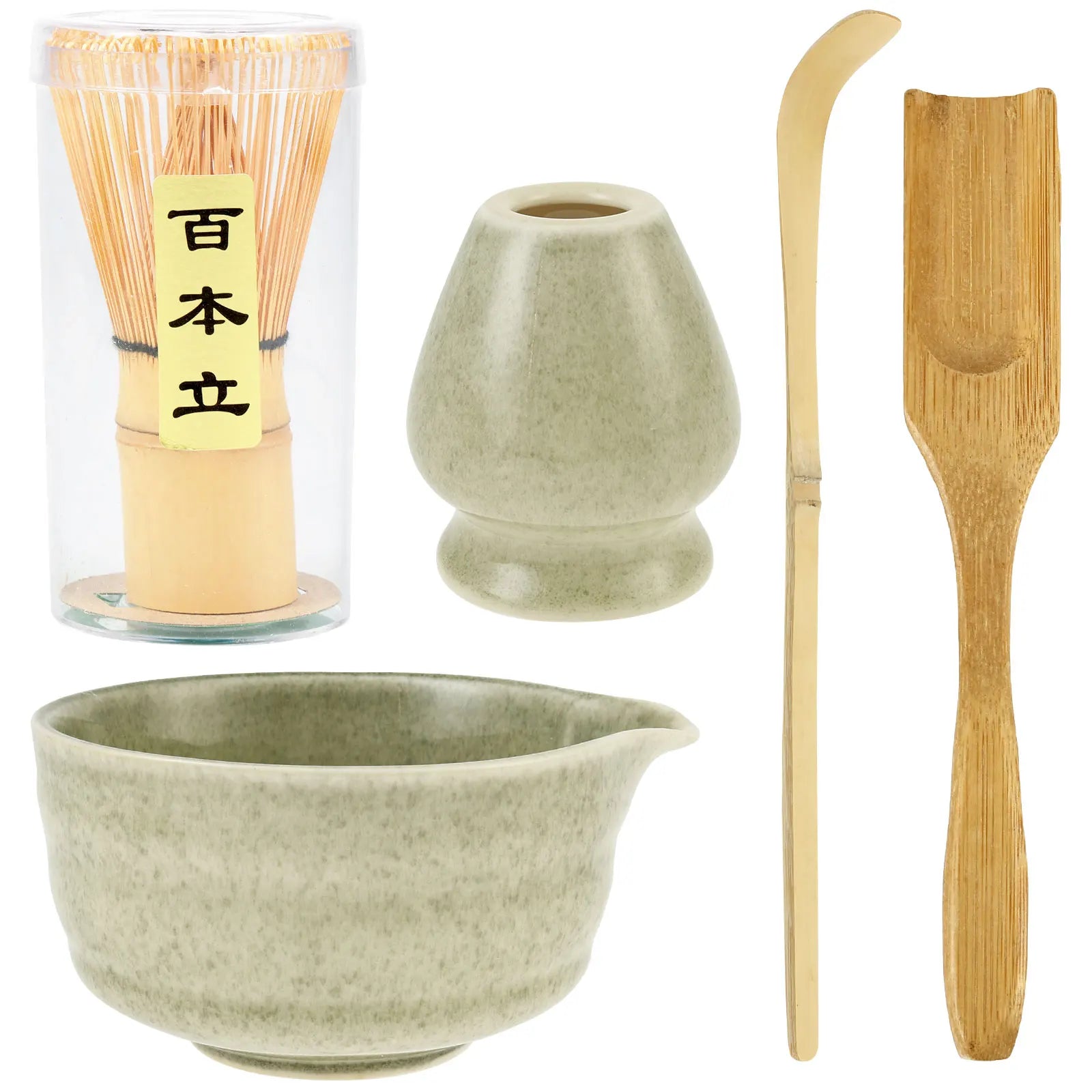 5 Pcs Matcha Set Includes Matcha Bowl with Spout Matcha Whisk Holder Bamboo Matcha Whisk Spoon and Tea Scoop Complete Japanese