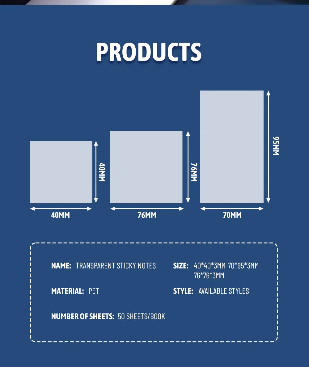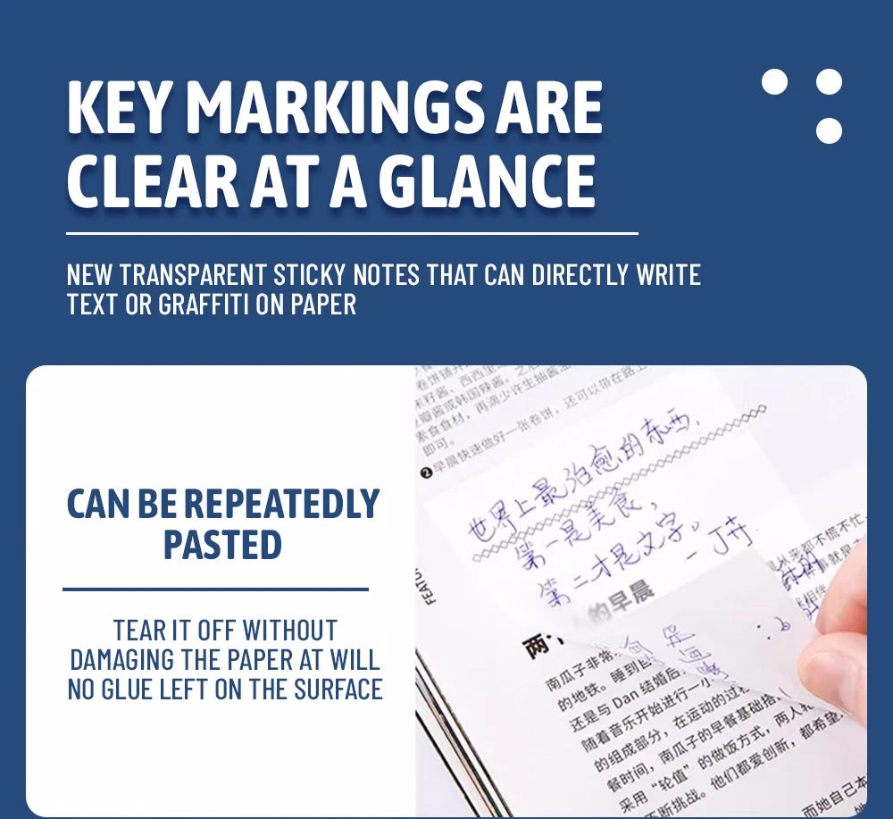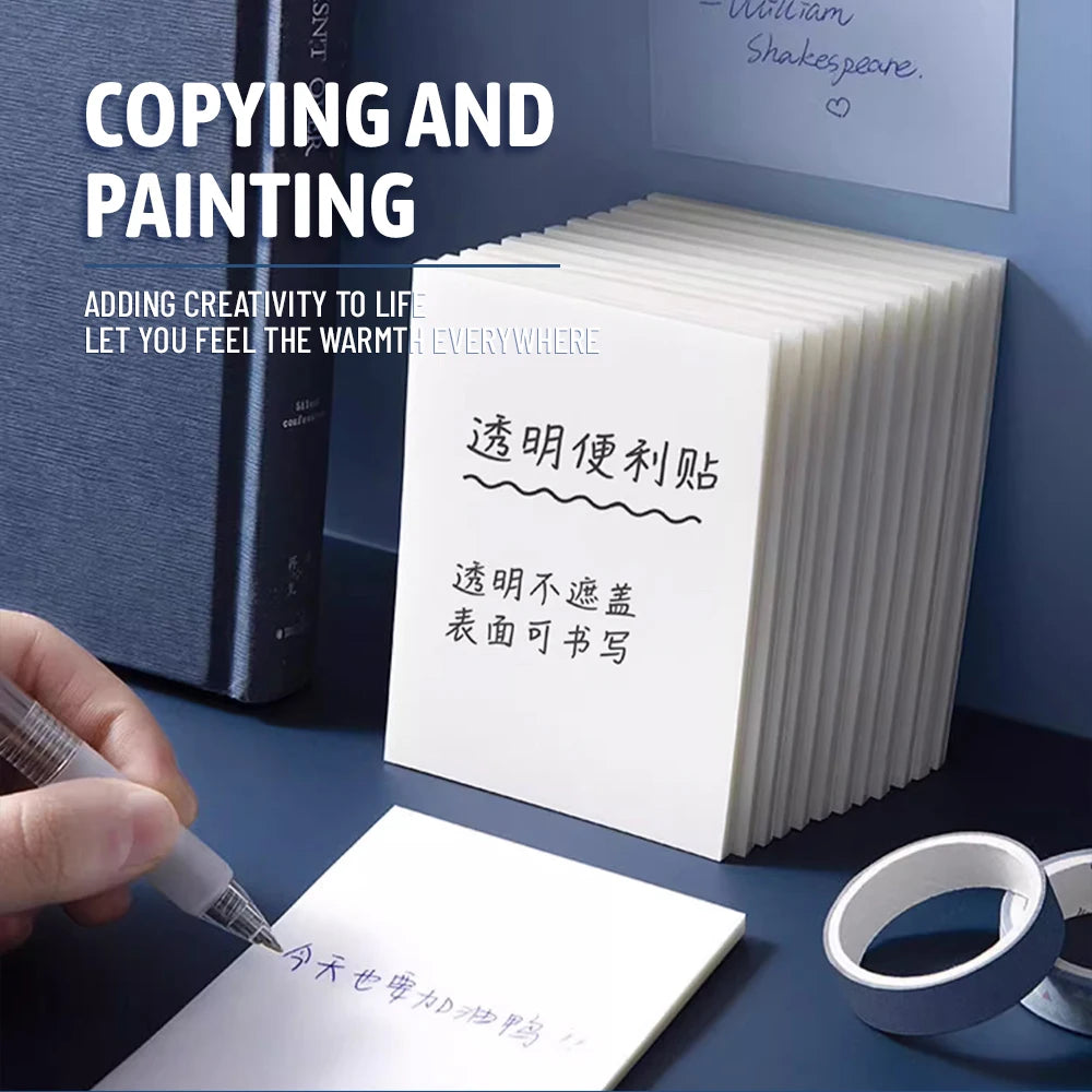 50/100 Sheets Sticky notes Reusable Transparent sticky notes Waterproof note paper for School office stationery Bookmark Marker