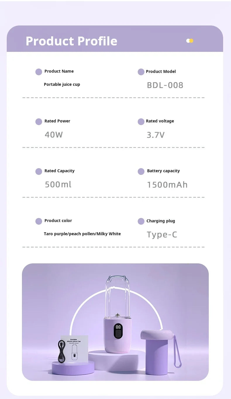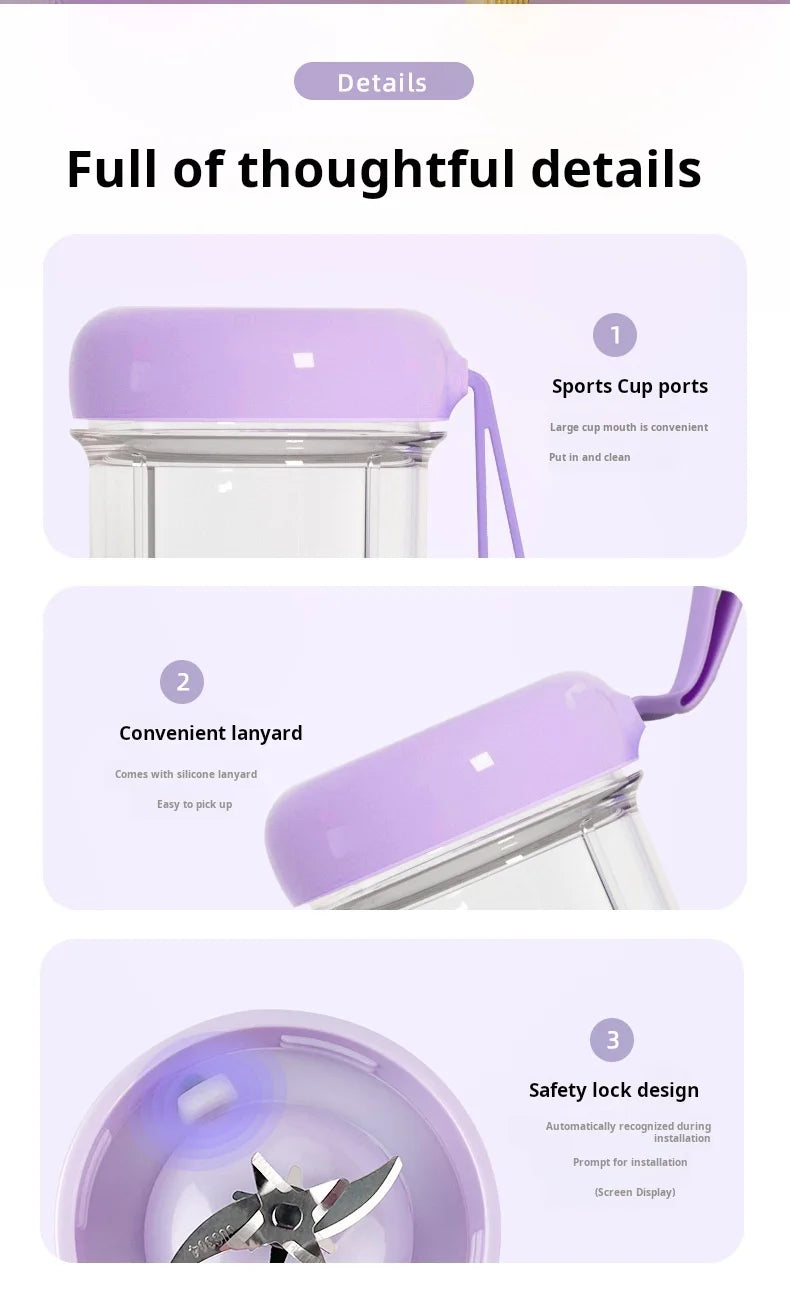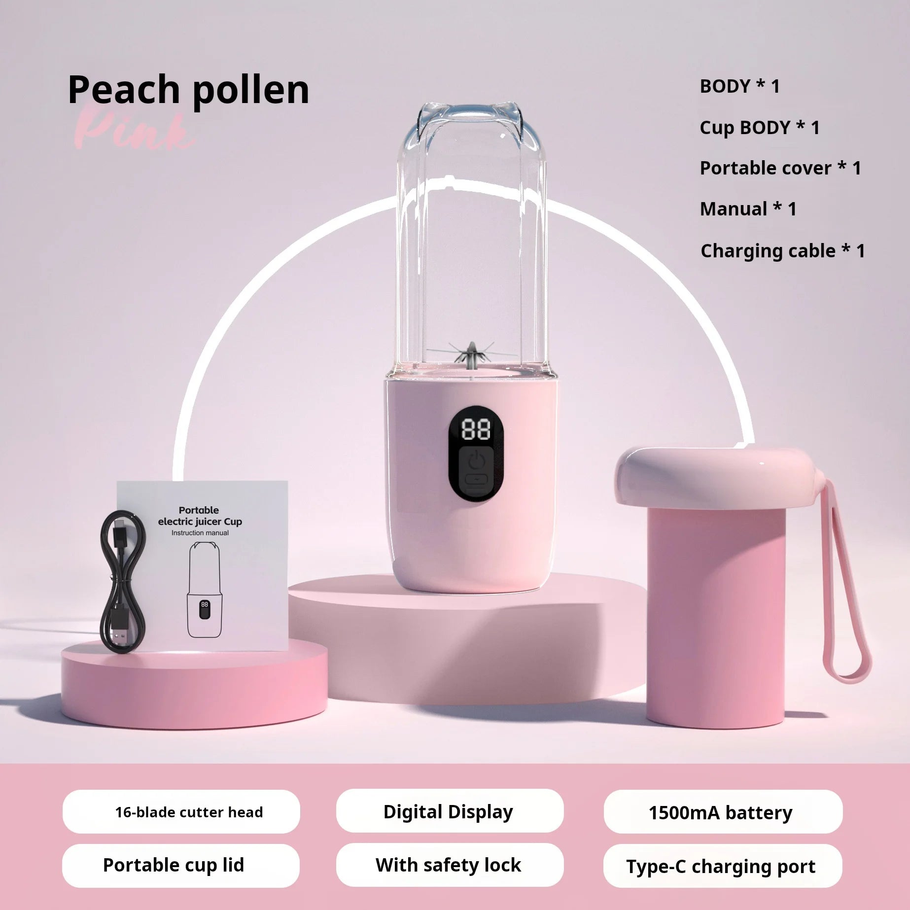 500ML Portable Blender with Lid Rechargeable Wireless Orange Juicer 16 Stainless Blades USB Smoothie Vegetables Fruits Mixer