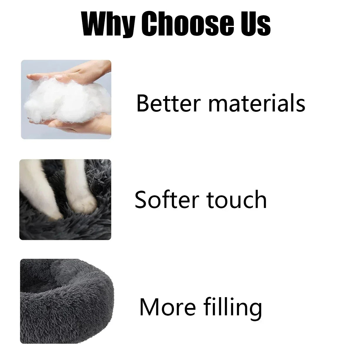 50cm Round Pet Bed for Small medium Dog Bed Cat Bed,Long Plush Dark Gray Dog Bed