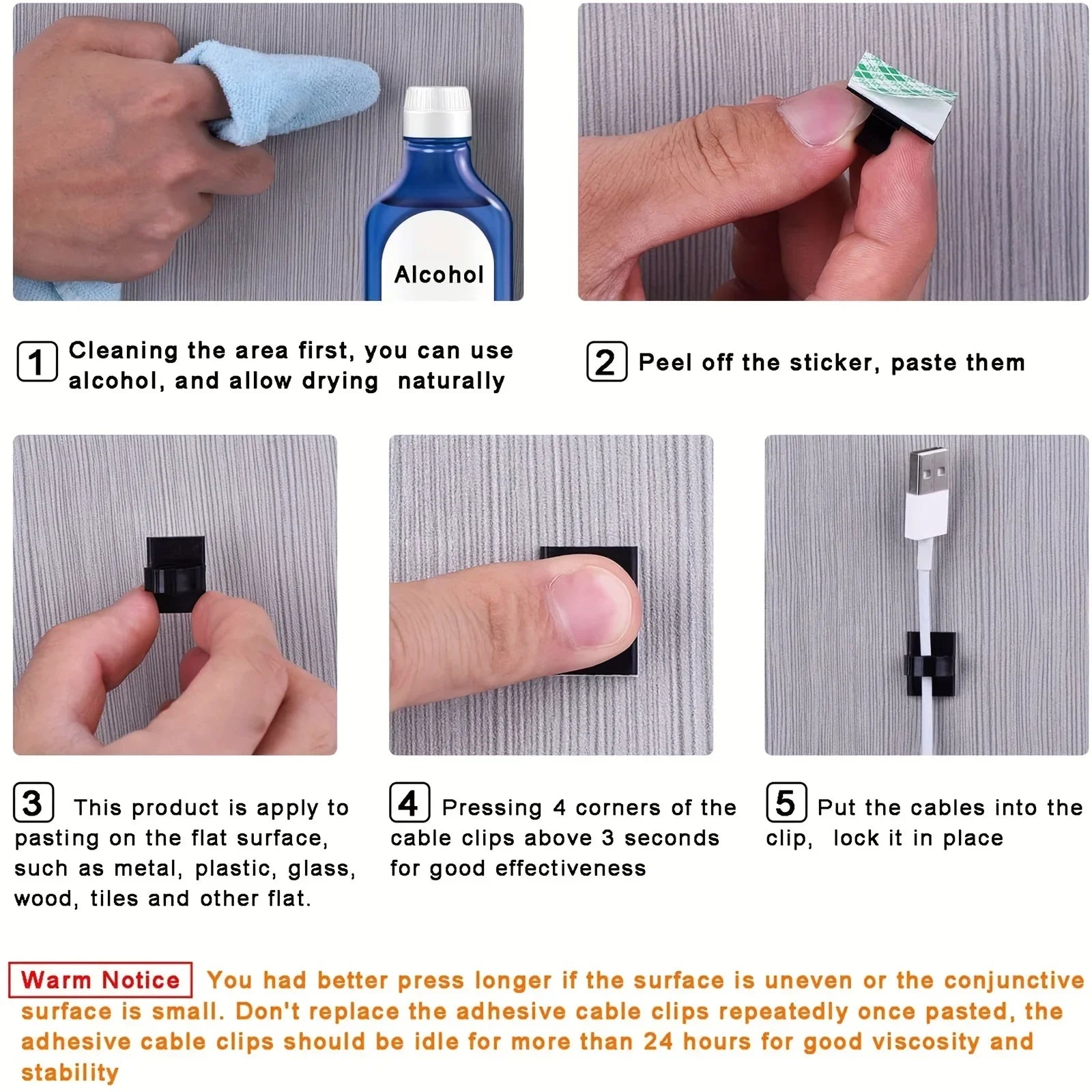 50pcs Adhesive Cable Clips Wire Clips Cable Wire Management Wire Cable Holder Clamps Cable Tie Holder For Car, Office And Home