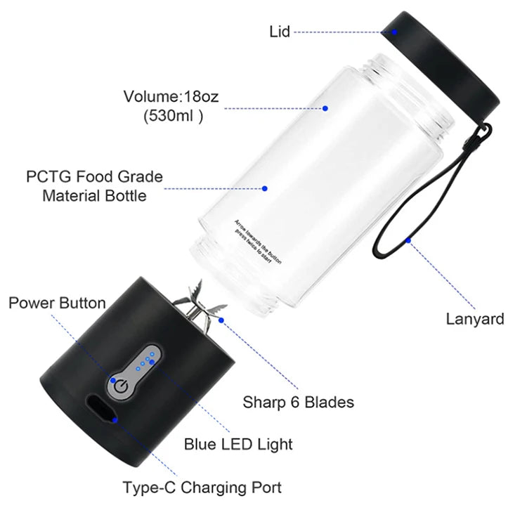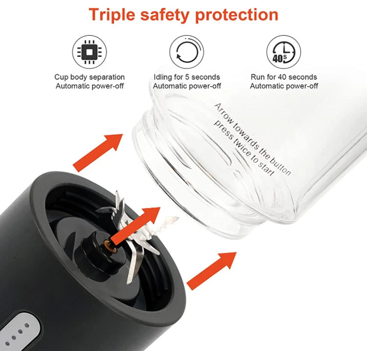 530ML Powerful Portable Blender for Smoothies Shakes USB Rechargeable Food Processor Fruit Mixer Machine Mini Juicer Blender Cup
