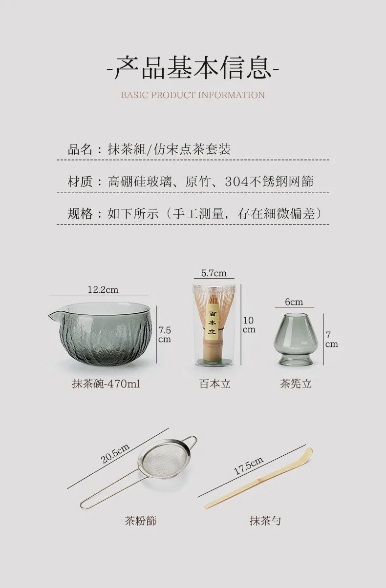 5Pcs Matcha Whisk Set Clear Glass Matchas Tea Set Matcha-Making Kit with Matcha Bowl Matcha Cup Matcha-Whisk for Tea Lovers