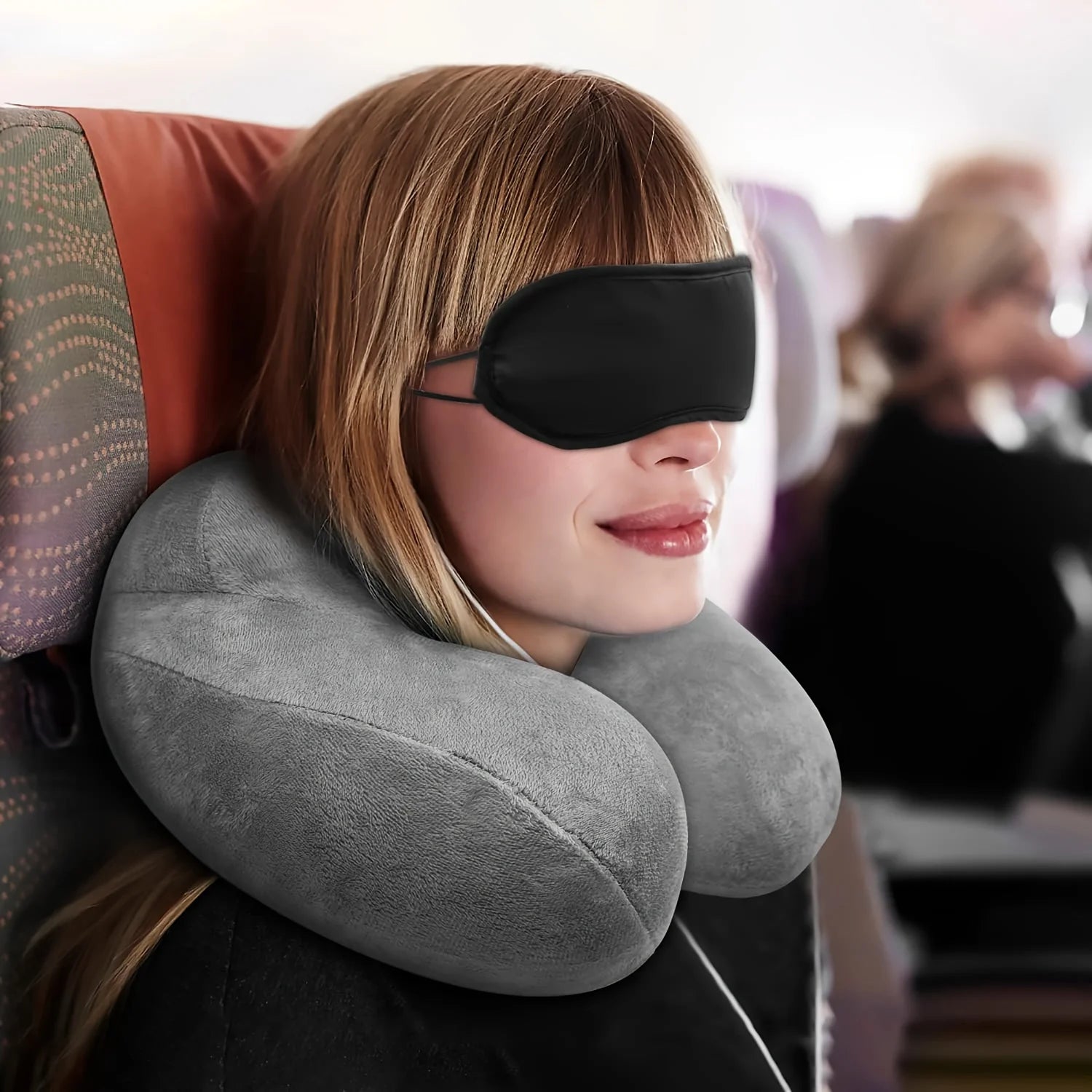 5Pcs Travel Pillow Set, Ergonomic Inflatable Travel Pillow with Earplugs - Soft Velvet Neck Support for Easy Storage and Carrying, Suitable for Airplanes, Cars, Offices and Campings, Sleep Rest Pillows