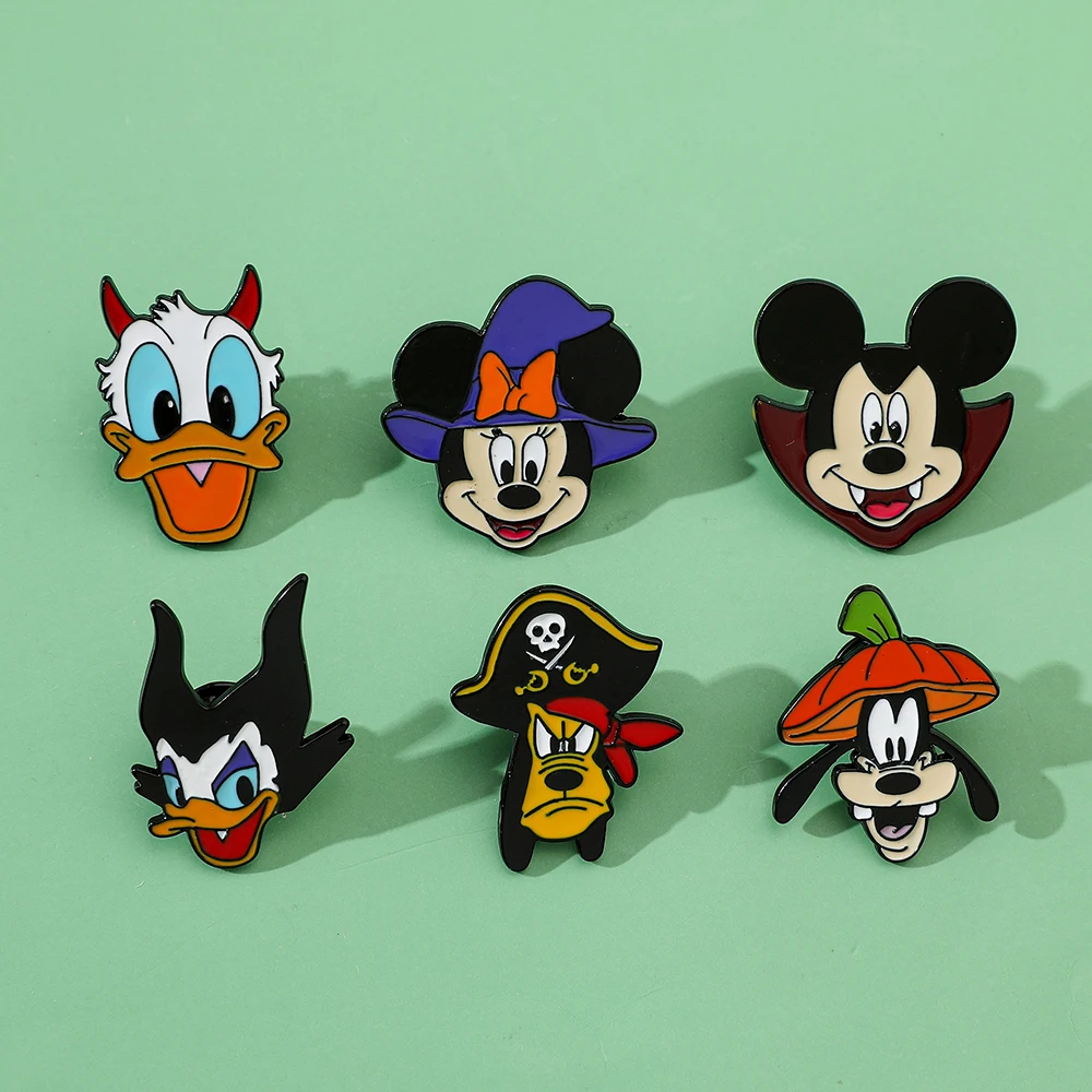 6 Pcs Cartoon cartoon character Mickey Brooch Halloween Mickey Mouse Donald Duck Metal badge Alloy drip pin accessories