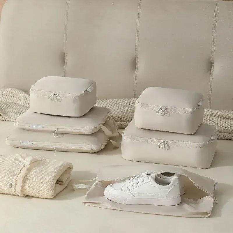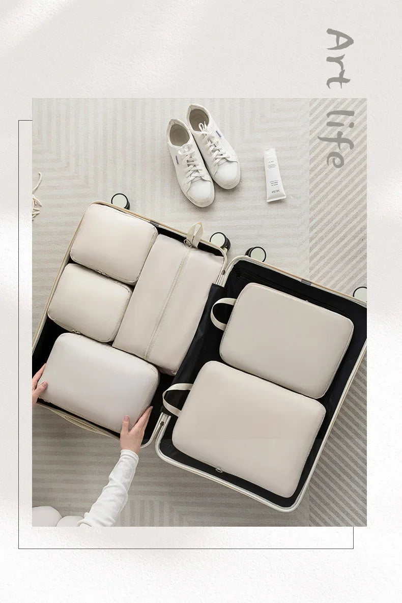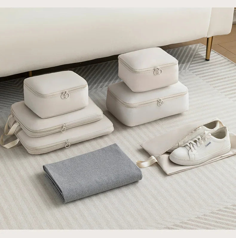 6-Piece Compressible Packing Cubes Set Waterproof - Portable Travel Organizer Bags for Luggage/Suitcase with Handbag Accessory