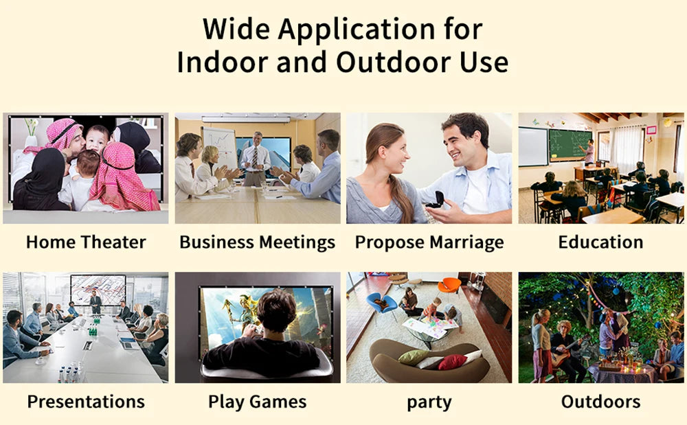 60 72 84 100 120 150 inch Simple Foldable Projection Screen 100inch Curtain 16:9 Outdoor Full HD 2K 4K Projector Screen Curtain