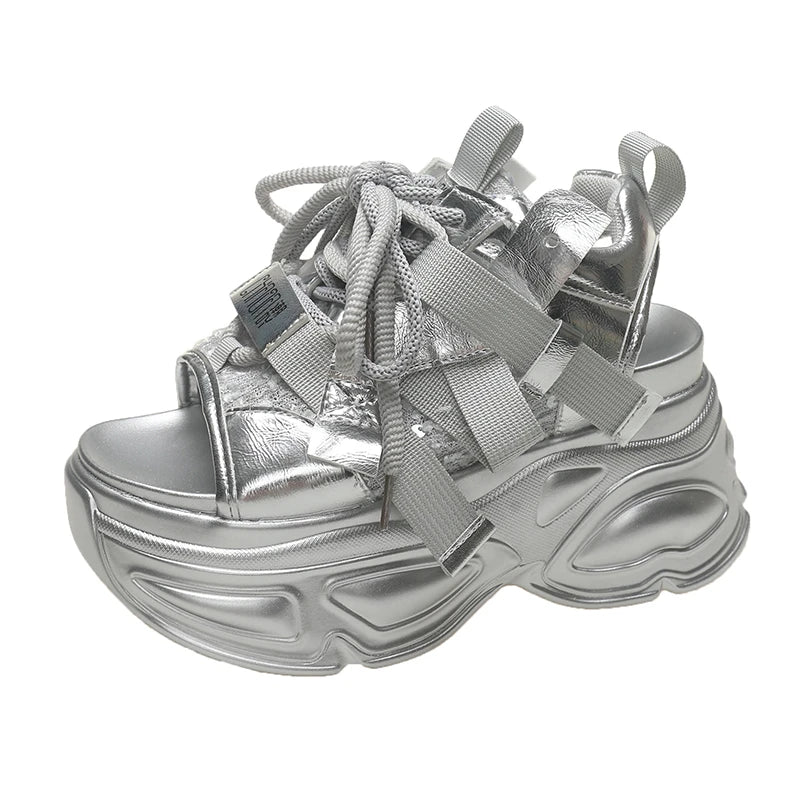 8.5cm Summer Women Leather Chunky Sandals High Platform Trainers Breathable Casual Slippers Shoes New Woman Heels Wedge Sneakers