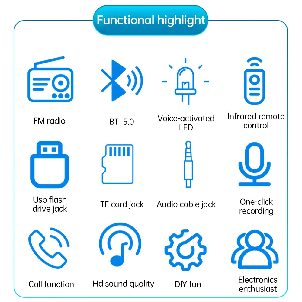 87.5-108MHZ FM Radio Stereo DIY Kit Amplifier Bluetooth Speaker Spectrum Electronic Fabrication DIY Electronic Kit