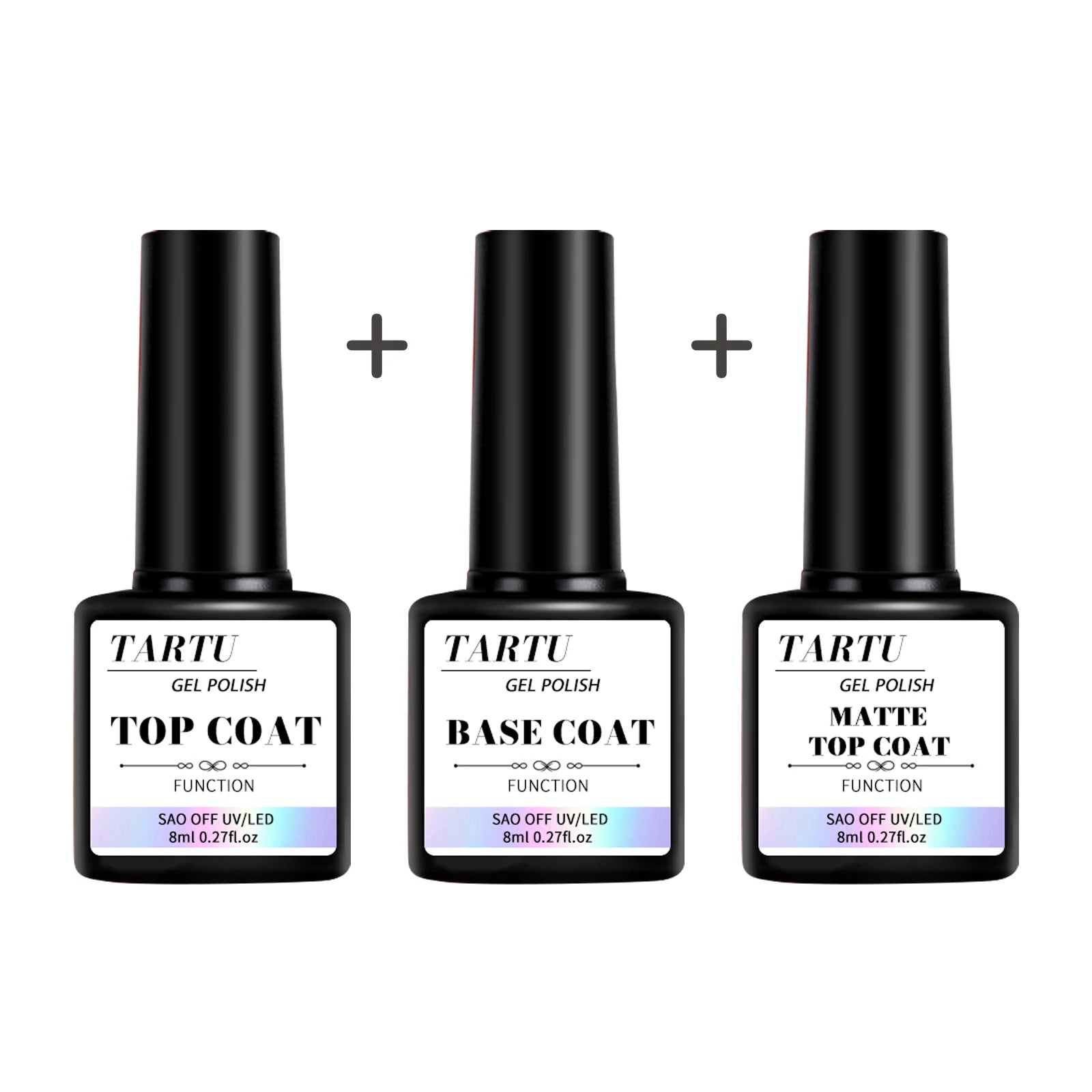 8Ml Functional Gel Nail Art Set with Base Coat and Diamond Top Coat,Matte Top ,Soak Off Gel Nail Polish for Nail Art Design Tool
