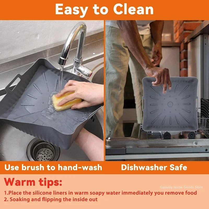 9" Silicone Air Fryer Liners for Cosori/Ninja 6-8QT - 23cm Square Reusable Baking Tray Oil-Free & Dishwasher-Safe
