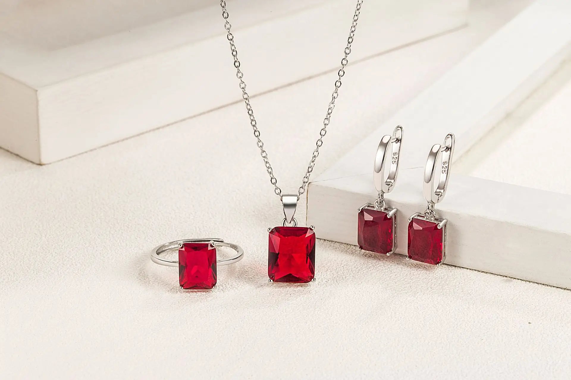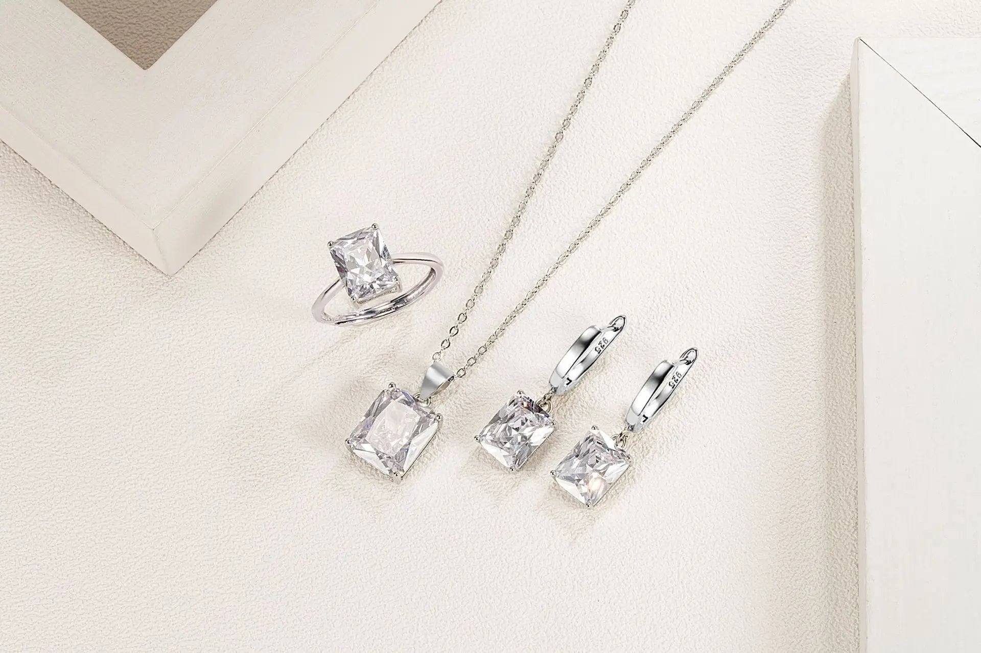 925 Sterling Silver Elegant Jewelry Sets Ring Earrings Necklace For Women Rectangle Geometry Zircon Wedding Accessories