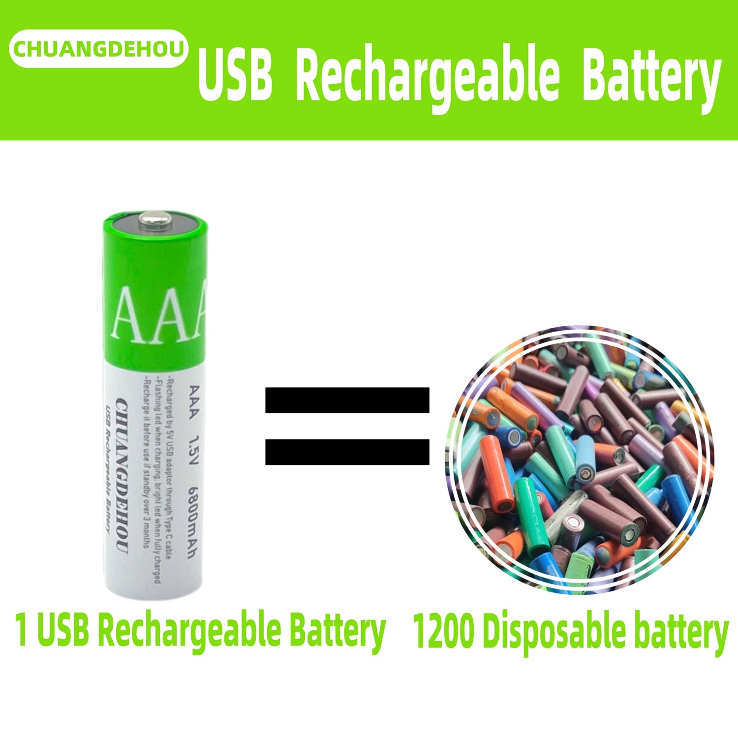 Aaa Rechargeable Batteries 6800Mah 1.5V Usb-C Fast Charging 2000+ Cycles for Remote/Toy/Camera/Mouse Long Lasting