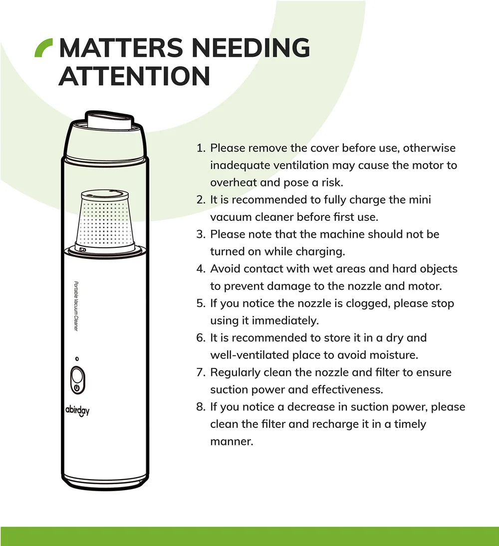 ABIRDAY Cordless Handheld Vacuum Cleaner for Laptop & Car,Portable & Multifunctional,USB Rechargeable,Strong Suction,Brushless