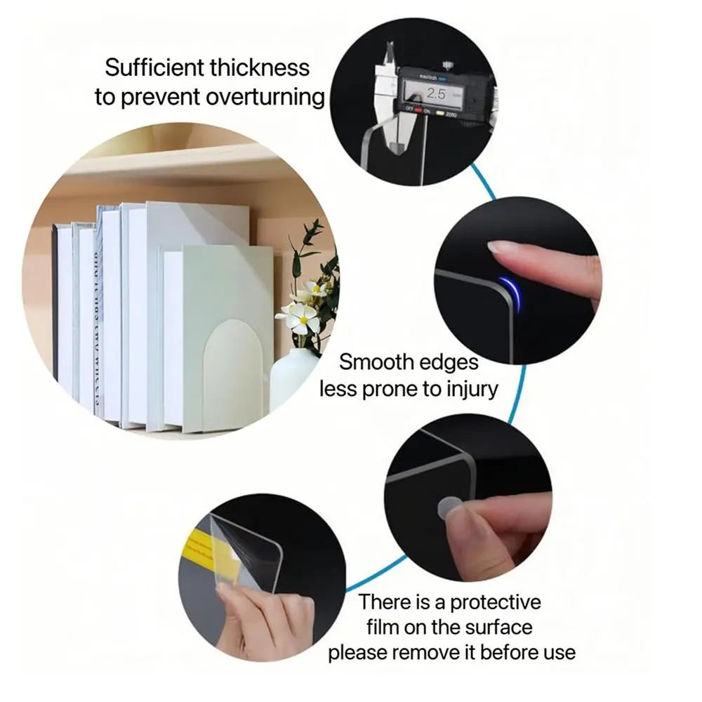 Acrylic Bookends Non-Skid Book End Clear Book Holder for School Library and Desktop Organizer Book Ends for Book Shelves