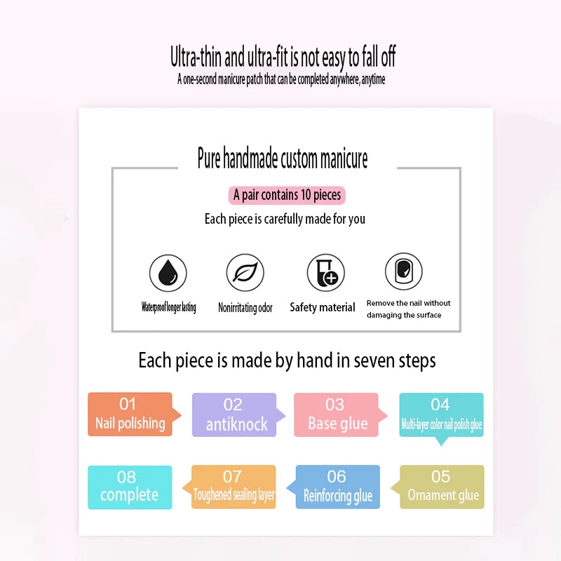 Acrylic Press on Nails With 3d Designs Kawaii Sea Shell Full Cover Artificial Nails Blue Color Handmade Japanese Manicuree Nails