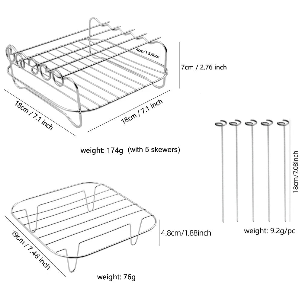 Air Fryer Accessories Silicone Air Fryer Liners with Stainless Steel Grill and Steaming Rack & Skewers Set