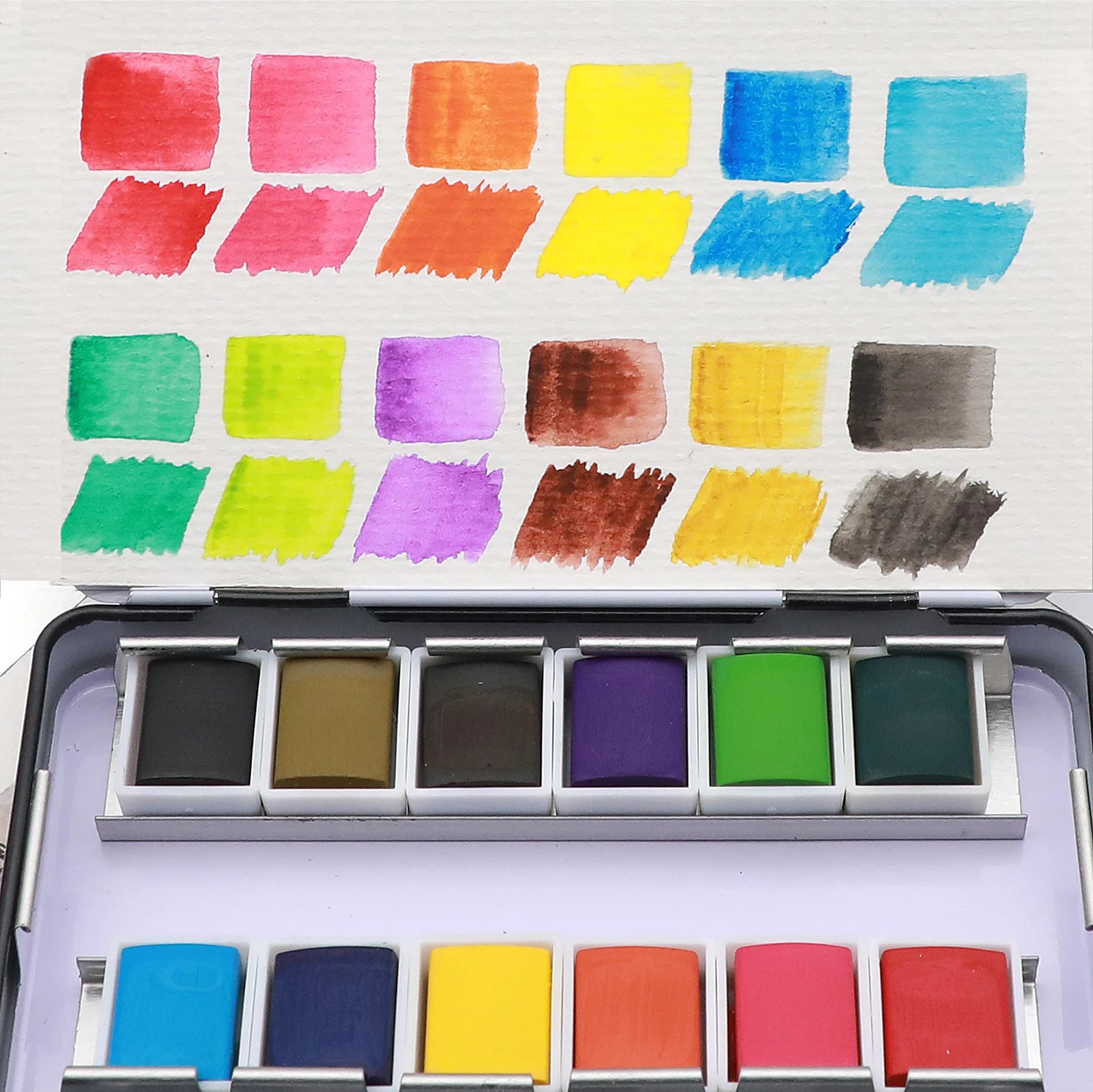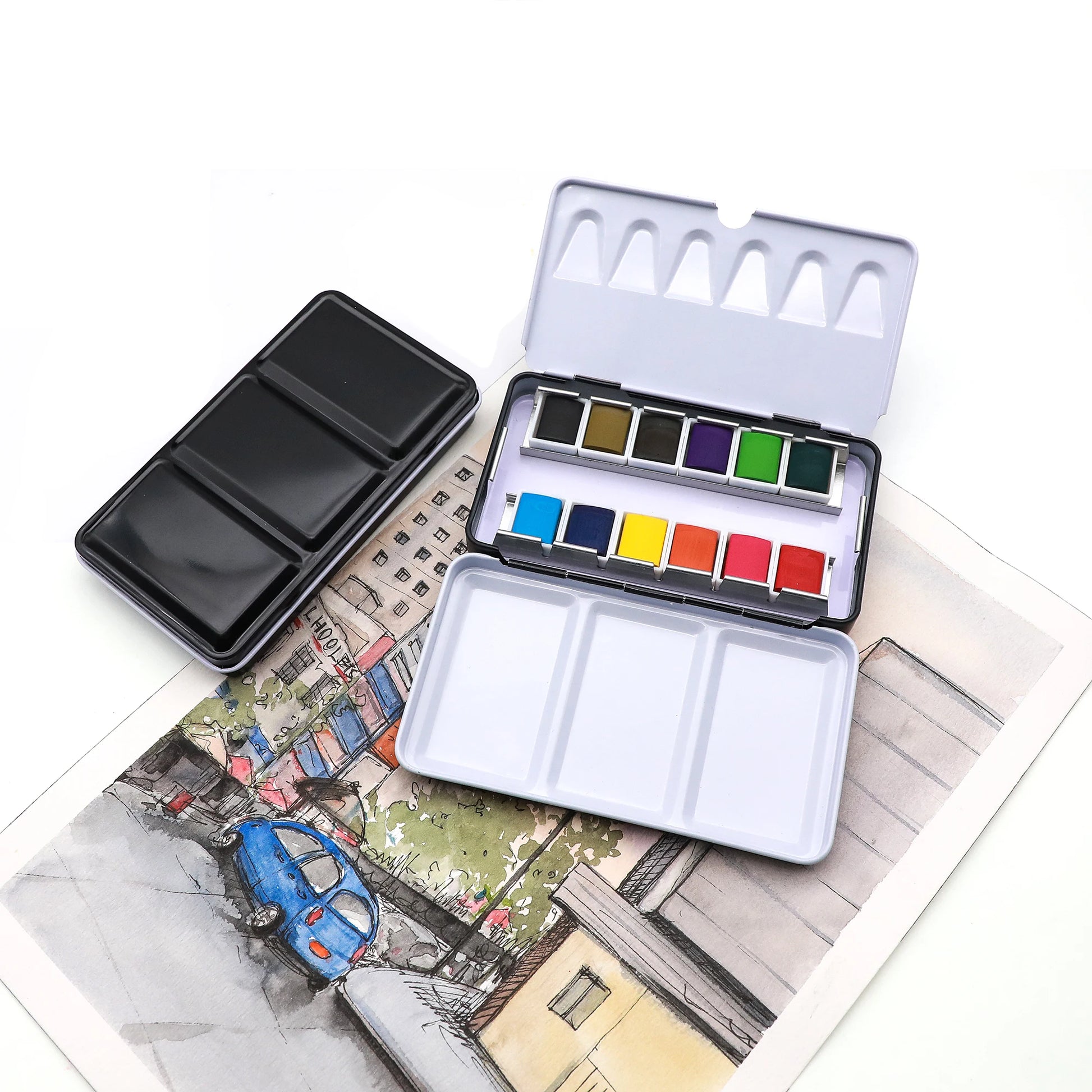 Artecho NEW Art Supplies Paint Set Tin Box Palette Solid Watercolor Set With 12 Essential Colors