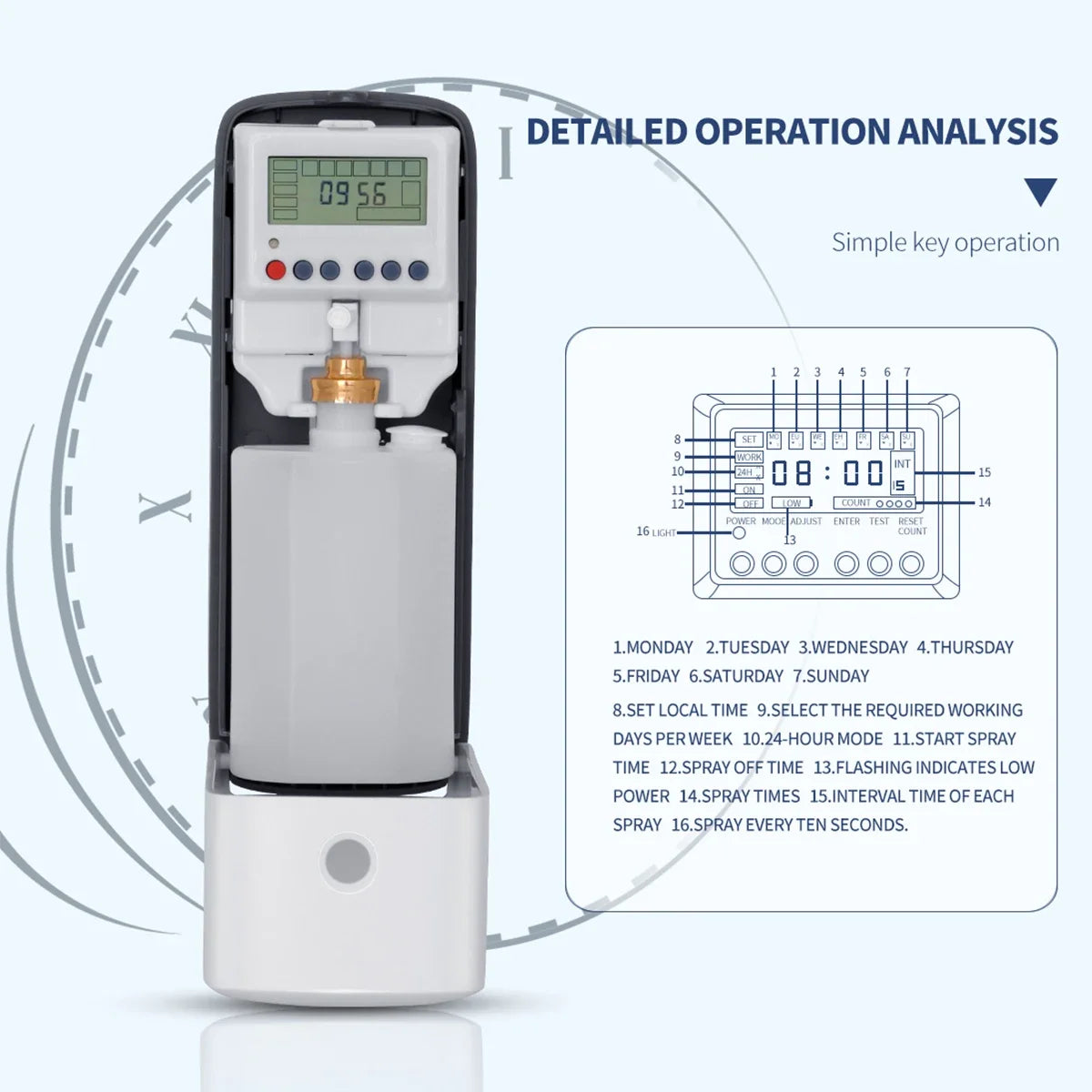 Automatic Fragrance Perfume Spray Distributor 300ML Liquid Air Freshener Dispenser LCD Programmable Toilet Room Odor Eliminator