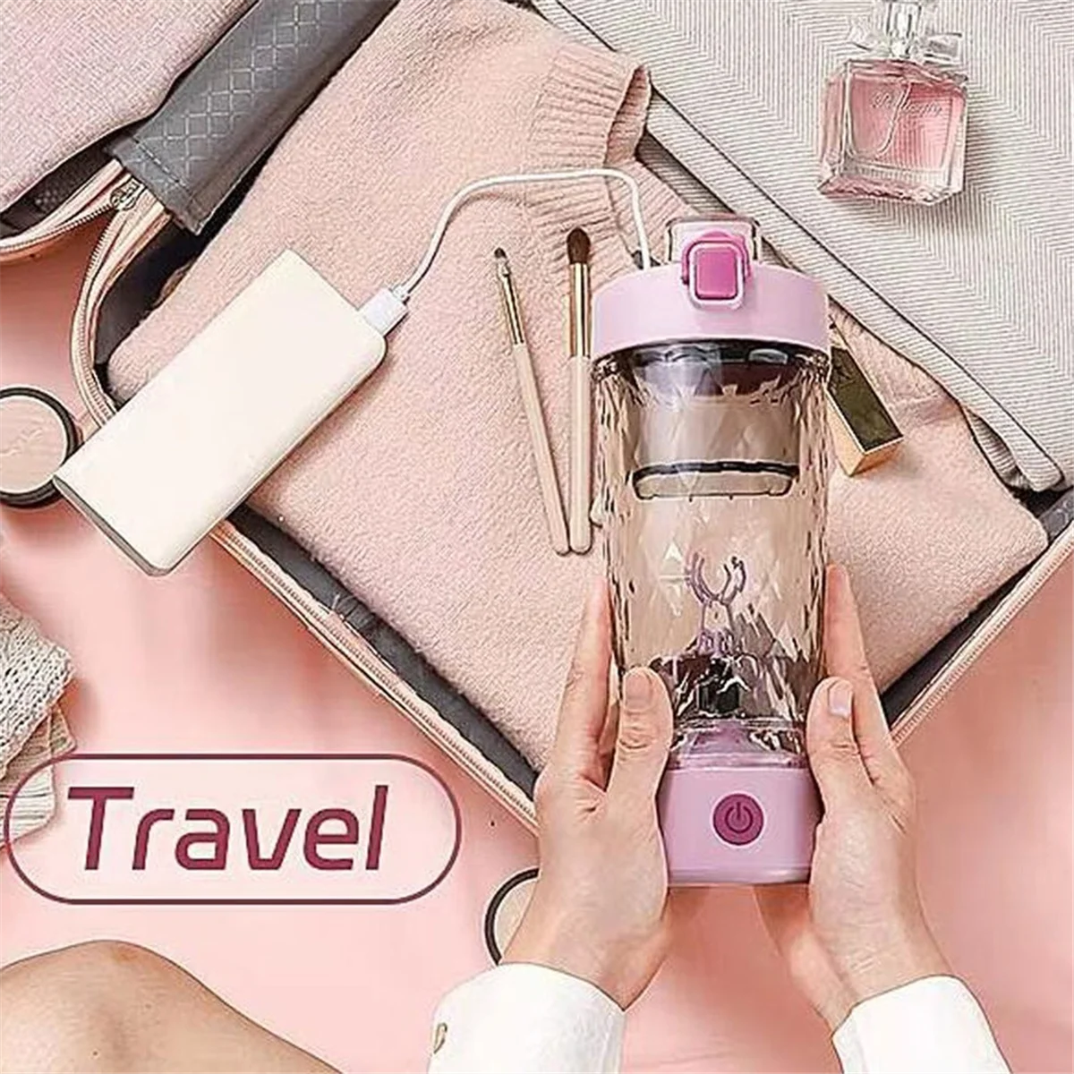B08B-Electric Protein Bottle - Automatic Mixer for Gym & Outdoor, Milk Coffee Blender Kettle,Shake Bottle Mixer Black