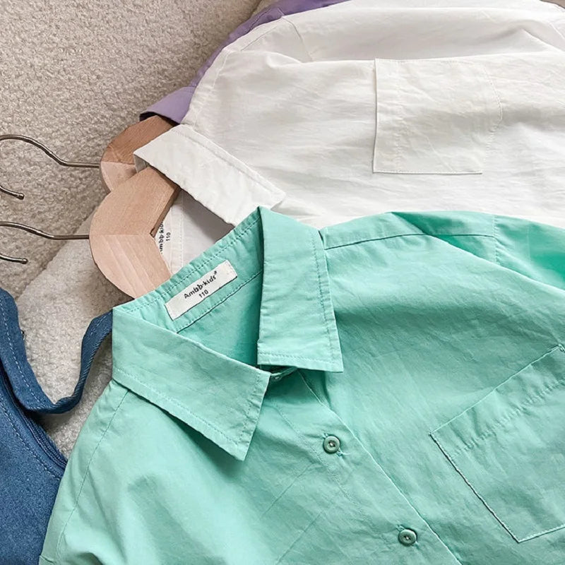 Baby Girl Boy Shirt Cotton Infant Toddler Child Loose Long Sleeve Blouses Solid Color Spring Autumn Summer Baby Clothes 1-10Y