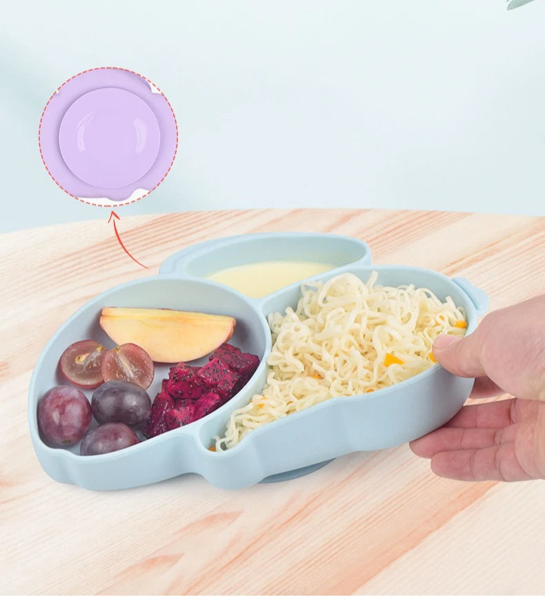 Baby Silicone Tableware Set Plate with sucker Waterproof Bib Newborn Feeding Burp Toddler Dinner Plate