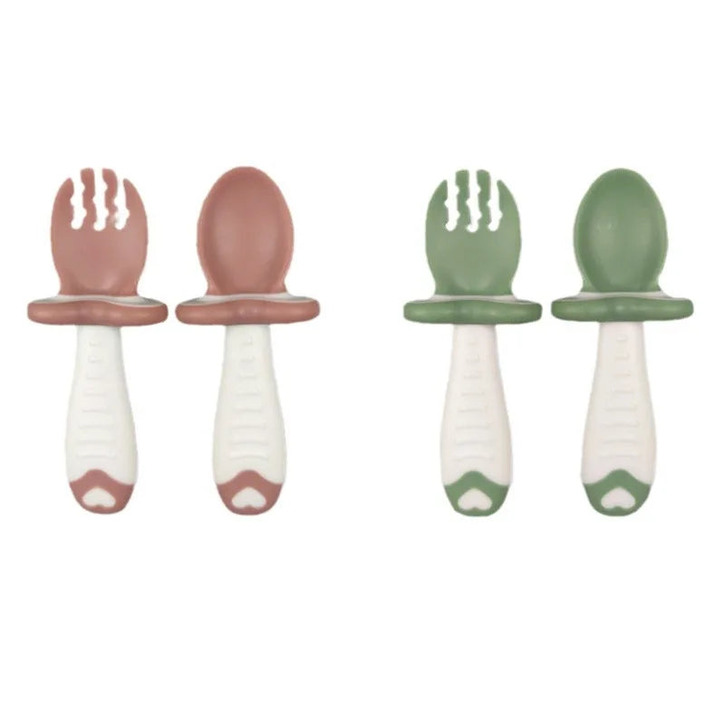 Baby Tableware Set Children Utensil Silicone Toddler Dinnerware Cutlery Cartoon Infant Food Feeding Spoon Fork Baby Gadgets