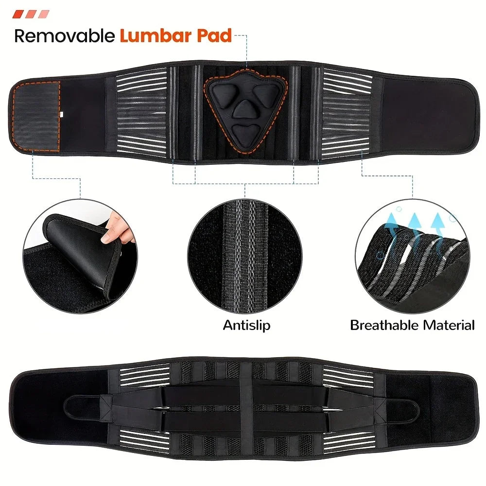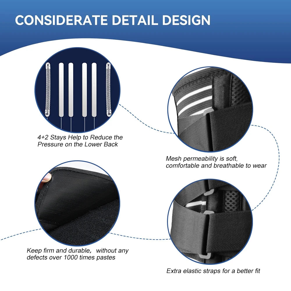 Back Brace with Lumbar Pad,6 Flexible Support,Back Brace for Men Lower Back,Lightweight Back Brace for Lower Back Pain