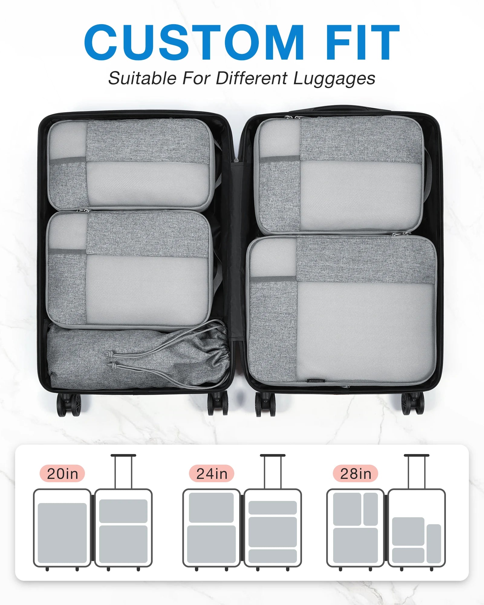 BAGSMART Compression Packing Cubes 6 Set Travel Organizers for Luggage Compressed Organizers Suitcase Organizers with Shoe Bags