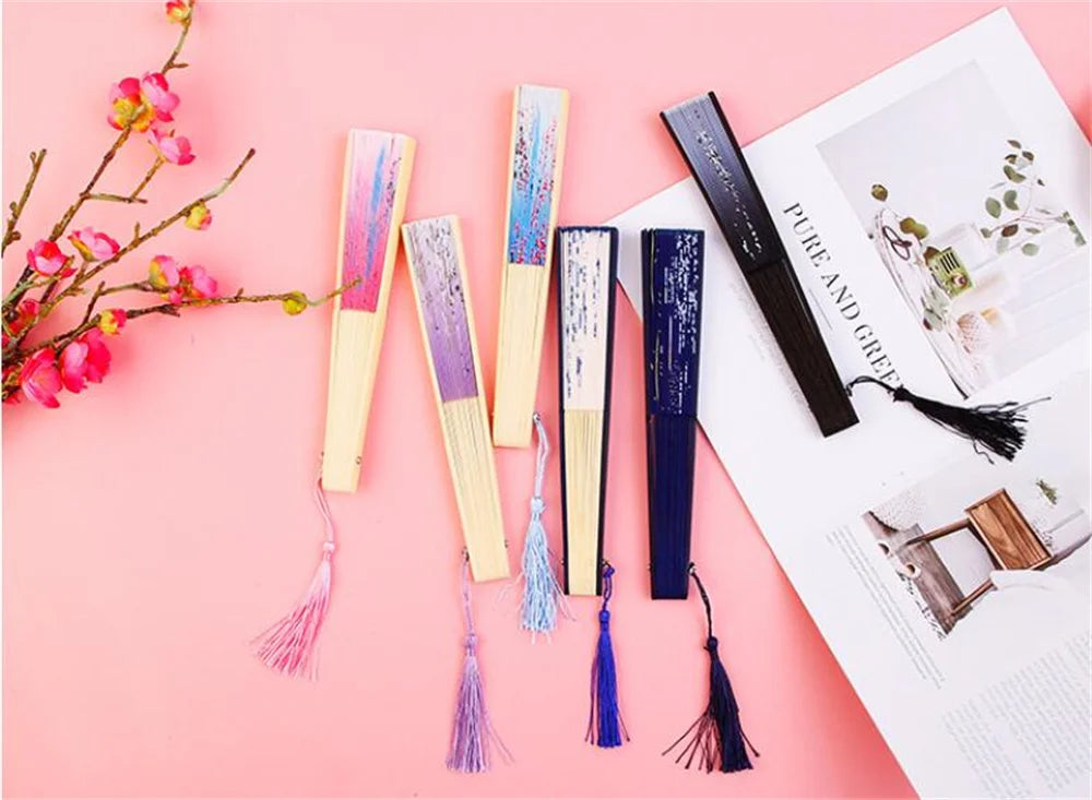 Bamboo Folding Fan Silk Chinese Fan Hand Women Black Fan Summer Female Dance Home Decoration Party Gift Home Ornament Fan Black