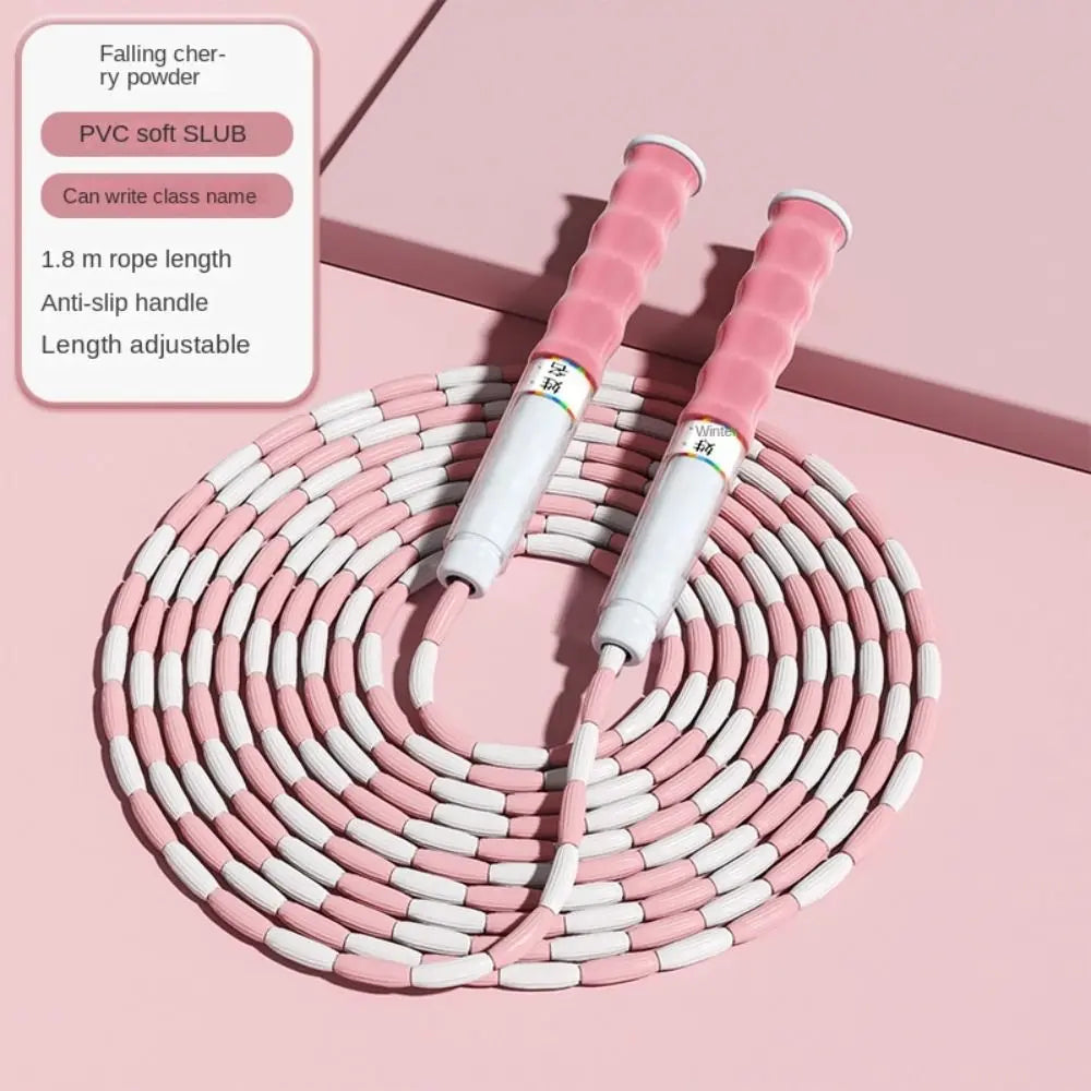 Bamboo Joint Soft Bead Skipping Rope 2.8m Solid Color Segmented Fitness Jump Rope Durable Anti-Skid Sports Rope