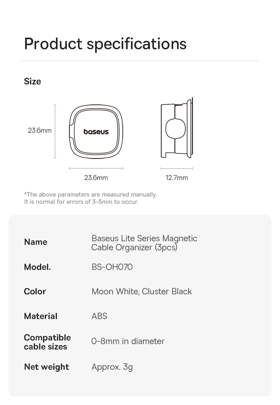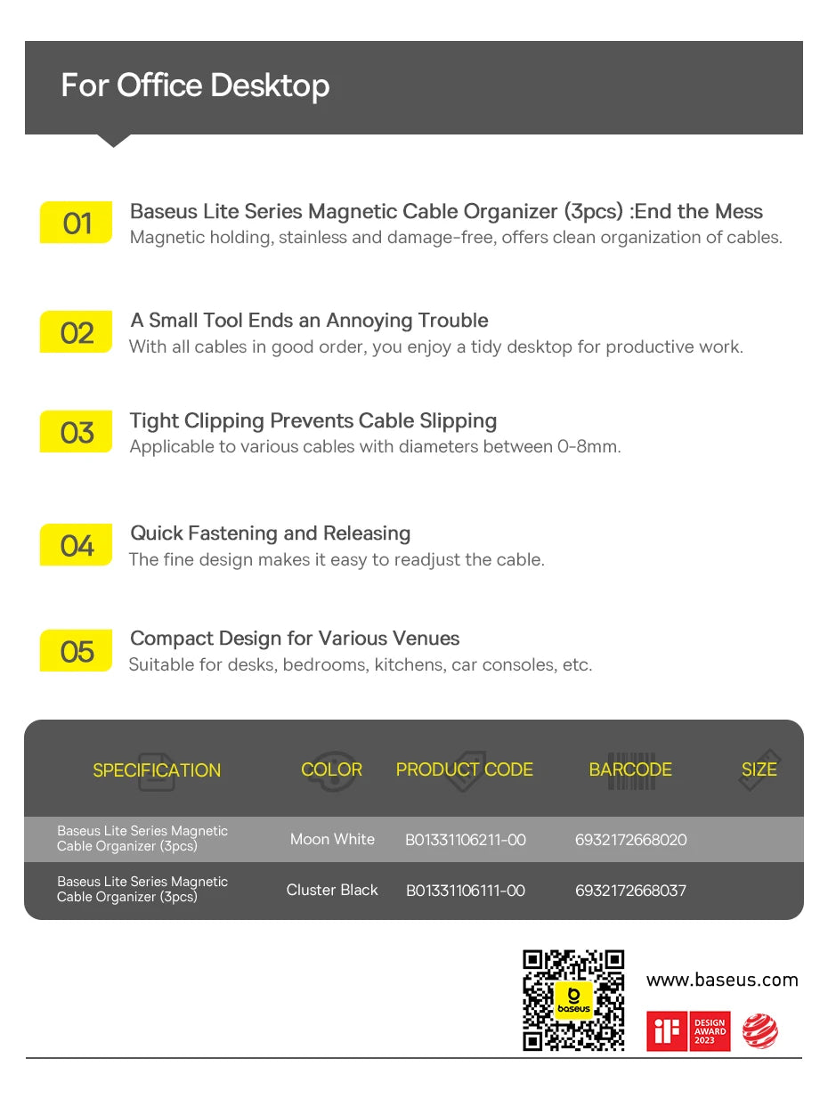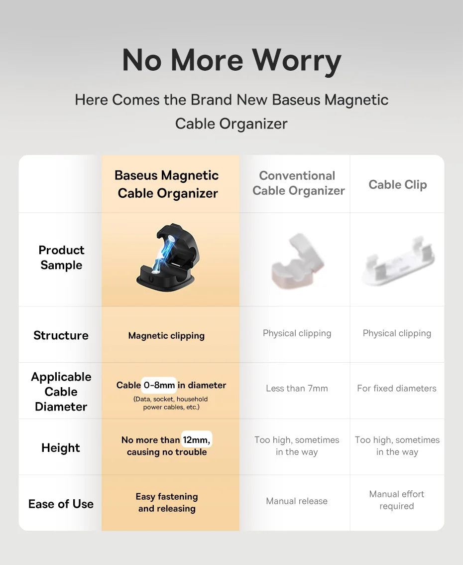 Baseus Cable Organizer Holder Magnetic Cable Smooth Adjustable Cord Holder Under Desk Cable Management Wire Keeper Cable Clips