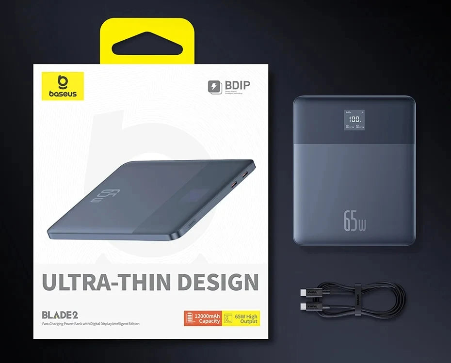 Baseus Power Bank 65W 12000mAh PD Fast Charging Digital Remaining Battery for iPhone 16 Pro Max Huawei Sumsang Notebooks Laptops