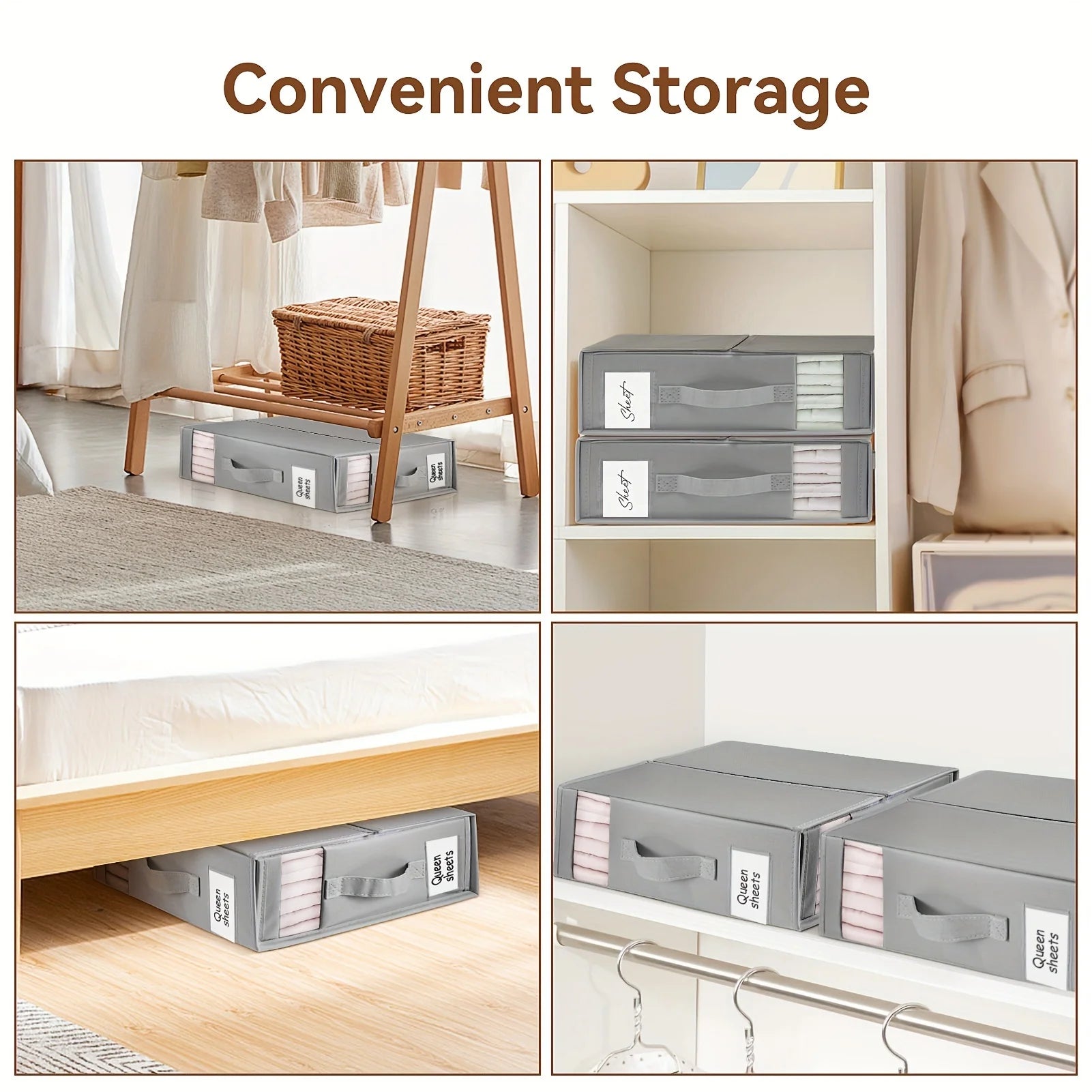 Bed Sheets Set Organizers Storage Linen Fabric Closet Organizers with Window Folding Bedding Storage Box for Pillow Organizer