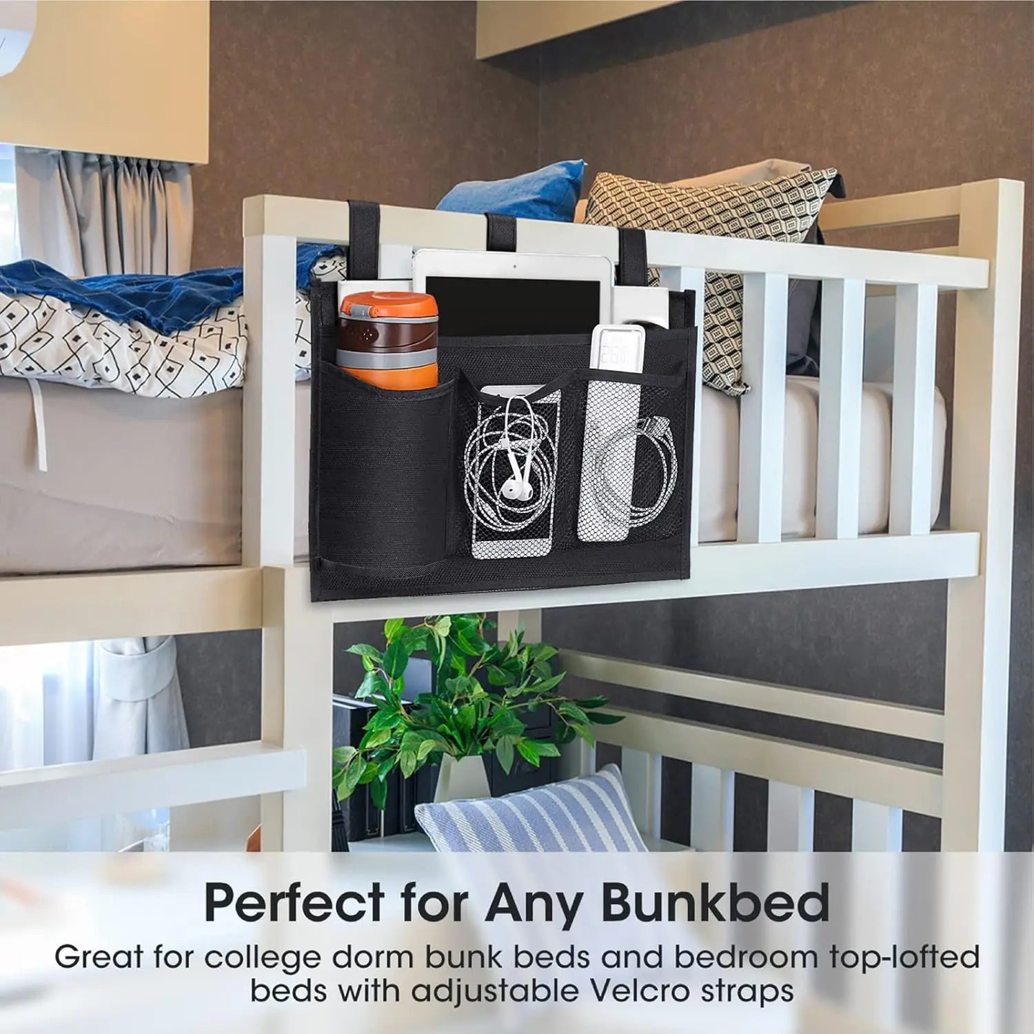 Bedside Caddy Storage Bag Multi Pockets Hanging Bag Bed Accessories Organizer Gadget Oxford Cloth for Dorm Bunk Hospital Book